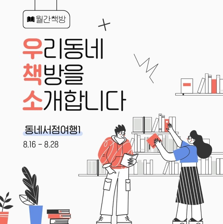 우리 동네 책방을 소개합니다 8월 16일부터 8월 28일까지 네이버 동네서점여행1이 진행됩니다. 첫 번째로 진행되는 서점은 다시서점을 포함해 아홉 곳의 서점입니다. 이하 링크에서 동네책방을 만나보실 수 있습니다. https://shopping.naver.com/plan/details/619911