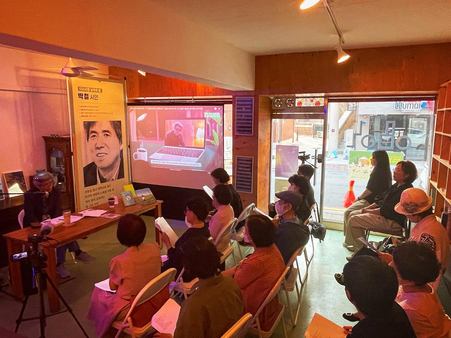 아까 박철 선생님 계실 때도 말씀드렸지만, 선생님 시를 통해 강서구를, 방화동을, 개화산을 입체적으로 바라볼 수 있어서 항상 감사한 마음입니다. 세상은 손바닥 뒤집듯이 단면적으로만 흘러가지 않는 것 같아요. 가까이에서 보았다가, 멀리서 보았다가, 그 속으로 들어갔다가. 짧은 생각과 단순한 행동에 그치는 것이 아니라, 깊은 고민과 넓은 철학이 쌓여야 선생님처럼 좋은 시를 쓸 수 있지 않을까요. 선생님들의 시를 읽으면서 시는 한낱 종이 한 면에 인쇄되곤 하지만, 그 시 속 세계는 입체적인 것 같다고 늘 생각합니다. 세상을 여러 방면에서 바라볼 수 있게 해주셔서 항상 감사드립니다. 오늘도 진행과 대담을 맡아주신 수필가 김동기 선생님과 시낭송을 해주신 최경애 시낭송가님, 자리를 빛내주신 강서 문인 협회 선생님들과 지역 주민분들께 거듭 감사드립니다.
