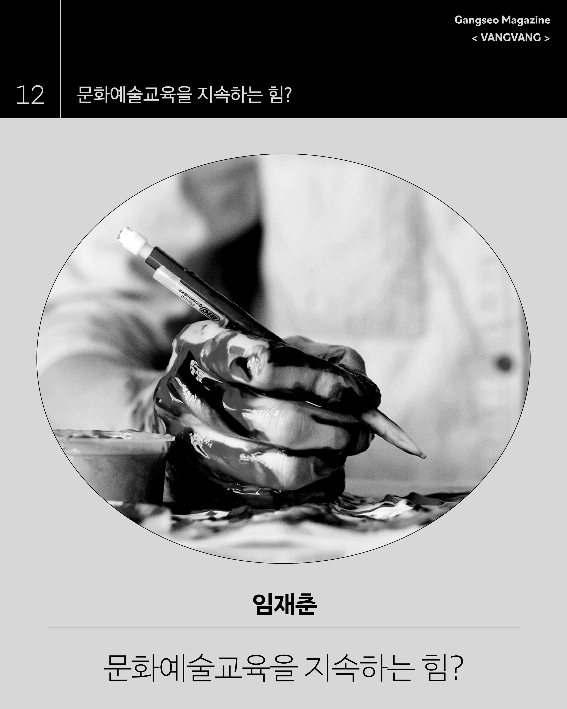 문화예술교육을 지속하는 힘? 나의 미련함과 무지함, 그리고 운 20대 중반 한 공연 기획사의 인턴으로 문화판 사회생활을 시작한 후 중요한 의사결정과 무관한, 그러나 꼭 필요한 자잘한 노동을 하면서 예술가와 무대, 그 주변과 과정을 곁눈질하며 2년여의 시간을 보낸 적이 있다. 당연히 맡은 일만 구멍 나지 않게 하면 될 뿐, 아무도 이 예술가에 대해, 만드는 무대의 의미에 대해 말해주지 않았다. 돌이켜보면, 그들은 그 의미를 알고 있었을까, 고민조차 없었을지도 모른다는 생각이 들지만, 직관적으로 들었던 여러 의구심은 경험이 없는, 모르는 것투성이인 나에게 ‘무지’일 뿐 다른 시선이나 입장, 질문인 ‘의구심’으로서의 인정을 나 자신도 하지 못했다. 버려지는 시간인 것만 같았던 조금 미련하기도 했던 2년을 통해 나는 그 의구심을 문장으로 말할 수 있게 되었고, 문장으로 생각이 명료해지니 직업과 직장으로서 내 다음의 경로가 조금 선명해졌다. 그 문장이 이런 종류의 내용이었다. “보통의 사람들이 예술을 경험할 수 있어야 하지 않을까. 좋은 예술을. 무대를 찾지 않아도.” 문화예술교육을 만난 것은 그로부터 4~5년 후쯤이었다.문화예술교육지원법이 만들어지고(2005) 이와 관련된 각종 사업이 시행되면서 문화예술교육이라는 말이 낯설고 모호하긴 해도 사람들은 일종의 공용어로서 받아들였다. 여전히 그렇지만 정책적인 필요와 이해관계의 산물인 문화예술교육이라는 용어를 예술가, 연구자 등 예술교육 주체들은 저마다 정의하며 논의하는 분위기가 형성되었고, 나의 질문도 여기에 합류함으로써 ‘일’로서 활력을 가질 수 있게 되었다. 당시 전국에서 유일했던 광역문화재단이 일터였기 때문에 정책적으로, 문화 기획의 측면에서, 예술가와의 협업, 어떤 체계와 연대라는 질문에서 문화예술교육을 다면적으로 고민하며 실행하는 주체일 수 있었다. 그중 단연 으뜸인 경험은 나와 유사한 질문을 가진 이들을 동료로 만나 함께 궁리하고 대화하며 일을 했던 ‘일과 관계의 문화’이다. 문화예술교육을 이해하기 위해서는 단순하지 않게 접근하는 넓은 시선이 요청된다는 앎과 함께, 그 앎의 중요한 한 축이 사람의 존재로서 발휘된다는 것 말이다. 정말이지, 이걸 체득하게 된 것은 행운이었다.예술을 전공하지 않은 나는 더 부지런히 예술에 관해 물어야 했다. 예술가의 작업을 유심히 들여다봐야 했고, 그들의 말을 경청해야 했다. 어느 순간에서든 납득이 되어야 하는 나는 문화예술교육을 관통하는 예술적 질문들, 교육적 물음, 예술가와 지역이라는 테제들에 대한 광범위한 지적 욕구가 동기부여가 되어 여러 경험적인 공부에 몰두해 있던 시절이기도 했다. 고백하건대 이 시기에 학습된 몸은 당시도 그렇지만 내 삶을 사유하는데 태도로서, 해결 방향으로서 지금도 여전히 중요한 실마리가 되어 준다. 덕분에 예술 너머 삶으로서 문화예술교육을 비춰보게 되고, 굳이 따져 말해보자면 예술의 형식이나 언어가 삶의 언어와 형식의 섬세함을 따라가지 못한다는 것을, 예술에서 삶을 찾기도 하지만 예술이 삶을 반영하고 따라가고자 애쓰는 것이구나 하는 이해에 다다르기도 한다.삶에서 부린 욕심이 있다면 예술 언저리에서 살겠다고 결심한 것이다. 내가 대학을 졸업할 때만 해도, 월급이 나오는 직장을 얻어 성실하게 출퇴근하는 것이 정상적인 경로였을 텐데 난 그러질 않았다, 못했다. 이유가 무엇이냐고 물으면 딱히 할 말이 없다. 오래되어 기억이 안 나기도 하지만 아마도 내가 무엇인가를 보았고, 느꼈고, 그로 인해 보기 이전으로 돌아갈 수 없었기 때문인데, 그것이 강렬한 어떤 한 가지가 아니기 때문이다. 말로 설명할 수 없는 것들도 있을 것이다. 욕심을 부린 책임감이었을까, 아니면 불안이랄까? 먹고 사는 일로서 성의를 다했다. 내 것으로서 기꺼운 마음을 다하는 것 외에 내가 들이밀 수 있는 다른 밑천이나 배경이 없었으므로.문화예술교육이라는 게 하나의 영역이나 분야로 작동됨으로써 되려 희미해진 것들을 떠올려본다. 삶과 예술의 다양한 사이들, 사람들이 살면서 경험하는 따듯하거나 혹은 고통스러움을 지나거나 감수하며 마주하게 되는 여러 아름다움에 대한 이야기와 문장들이 그렇다. 이를 저마다의 감수성과 시선으로, 언어로 회복하는 것이 중요하고, 필요하다는 생각이다. 그럼으로써 우리 각자가 문화예술교육을 ‘한다’고 할 수 있는 동시에 ‘산다’고 할 수 있지 않겠나. 임재춘커뮤니티 스튜디오104