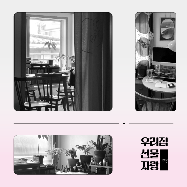 우리집 선물 자랑 공항동으로 이사를 오고 난 뒤 바쁘다는 핑계로 집 정리를 못 했던 나는 하나씩 정리를 하면서 깨닫게 되었다.‘내 방에는 친구들이 준 선물이 많구나.’, ‘내가 아끼는 물건들은 내가 산 것보다 받은 것이 더 많구나.’“달항아리가 갖고 싶어”하얀 달항아리가 갖고 싶다는 말에 연남동에서 예술 스튜디오이자 복합문화공간 ‘서울콜렉터’ 를 운영하는 친구들이 ‘그래? 그럼 하나 줄게!’라며 준 달항아리. 서울콜렉터 친구들은 종로4가에서 다시서점을 처음 시작할 때 알게 되었다. 벌써 10년 가까이 봐왔지만 정작 나는 이 친구들에게 뭘 준 적이 없는 것 같아서 미안한 마음이다. 사실 이번 청소도 이 친구들과 줌바댄스에 빠져있는‘꽃과 꺄바레’ @fleurs_des_cabarets 운영자 호두가 집들이를 온다고 해서 시작했다.“요즘 많이 바쁘시지요? 주말에도 바쁠 예정이십니까?”“시간은 괜찮은데”“저녁에 당신 집에 가려고 해요.”“그럼 청소 좀 해놓을게요.”“같은 엠비티아이로서 미리 알려드려야 할 거 같아서요.”“그럼 미리 준비 좀 해놓을 게라. ㅋㅋㅋ”“집들이라는 걸 하려고 해욬ㅋㅋㅋㅋㅋ”“그러면 다음 주부터는 청소를 해야.. ㅎㅎ 퇴근길에 락스 사가겠습니다.”“ㅋㅋㅋㅋㅋㅋㅋㅋㅋㅋㅋ 폐 건강에 주의하소서...”급하게 이사를 하느라 가구를 생각한 대로 배치하지 못하고 있었는데 기왕에 집 정리를 하는 거, 몇 달을 살아보면서 불편했던 구조를 바꿔보자는 생각이 들었다. 창가에 있던 음반은 날씨에 취약하니 방으로 옮기고, 침대는 방 중앙에 위치시키고 아이맥은 침대옆으로. 언제든 작업을 하다가 침대로 뛰어들 수 있도록.방 양쪽 벽에는 사진작가 김태훈, 차평화가 준 사진을 걸어두었다.김태훈 작가가 준 사진은 방울토마토가 땅바닥에 떨어진 사진인데빅뱅 같아서 좋다. 전에 가게에 걸어두었다가 집으로 모셔왔다. 차평화 작가가 준 사진에는 비행기 창문에서 바라본 창밖 하늘과 비행기 날개가 보인다. 공항동으로 이사를 했다고 준 선물.커튼은 한남동 BAR 초능력 사장님. 바이홍 형아가 줬다. 키티버니포니 커튼인데 보는 사람들마다 어디서 샀느냐고 물어보는 커튼. 이사할 때마다 방을 화사하게 꾸며준다. 다른 커튼이 몇 개 더있기는 한데 거의 달지 않고 이 커튼으로 사계절을 난다. 한쪽에는친구, 손님들이 선물로 준 인형이 모여 있다. 하나하나 소중한 인형들.글을 쓴다고 매번 친구들이 선물해준 연필, 펜, 만년필. 이번에는시간이 나면 앉아서 글을 쓰려고 잘 정리해 두었다. 음향제작과 동기인 강동옥 과장이 파리여행을 다녀와서 준 모나리자 볼펜, 시 쓰는 서현범이 생일 선물로 준 만년필... 아직 다 쓰지 못한 연필과펜, 만년필이 많다. 아직 다 쓰지 못한 글이 있다는 듯이.네스프레소 머신은 존애하는 친구 미리가 주었다. 친구는 이삿짐을 정리하면서 커피 머신과 나그참파, 양키캔들 등을 줬는데 요긴하게 잘 사용하고 있다. 현관문에는 도형이 형이 준 달력이, 방 곳곳에는 친구들과 손님들이 준 화분이, 주방에는 도쿄 여행 갔을 때 B&B에서 샀다가 깨뜨렸던 걸 전해영 선생님이 킨츠키 해주신 예쁜 컵이.생일 선물로 받은 이승환 LP와 칸예 웨스트 선데이 서비스 LP. 소중하지 않은 것이 없다. 매번 물건을 만질 때마다 함께한 시간을떠올리게 된다. 거꾸로 나는 친구들에게 무엇을 선물했나 생각해보면 잘 생각나지 않는다. 상대방이 뭘 좋아하는지 너무 걱정하는탓에, 언젠가부터 건강을 걱정하게 되어서 영양제를 선물했던 것같은데.언젠가 최악의 크리스마스 선물로 책과 음반이 뽑혔다는 기사를보았다. 내가 가장 좋아하는 것들이 누군가에게는 최악이라서, ‘나는 왜 책방을 하고 있나’라는 생각을 하다가 선물은 주는 사람이마음도 함께 주는 것일 테니까 그 마음을 되새기자고 생각했다. 우리 집에는 그런 마음이 쌓여 있다. 그러니 이젠 바빠도 시간을 좀내서 친구들을 만나야지.김경현@Seouluncle