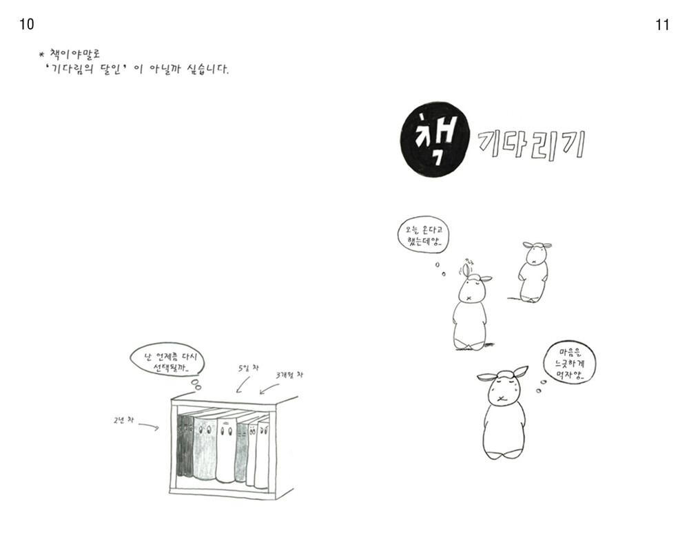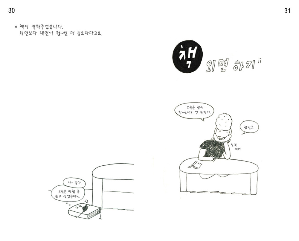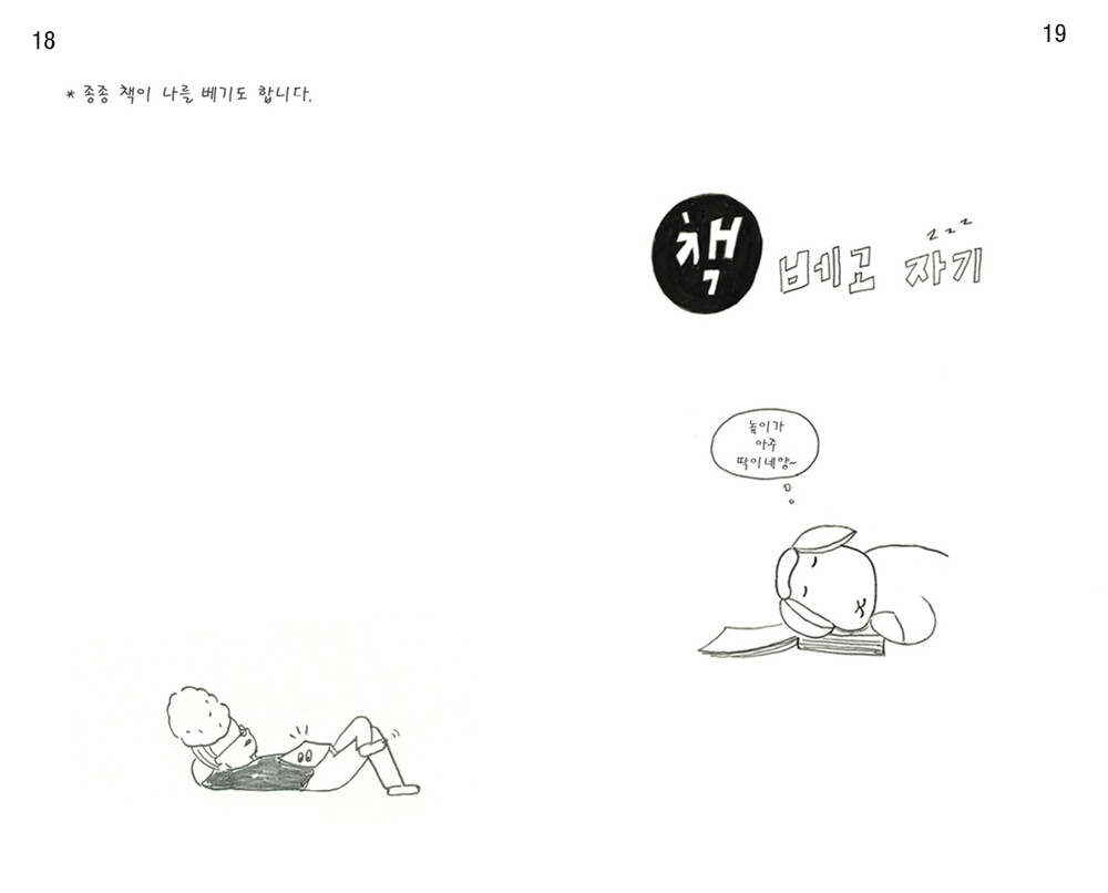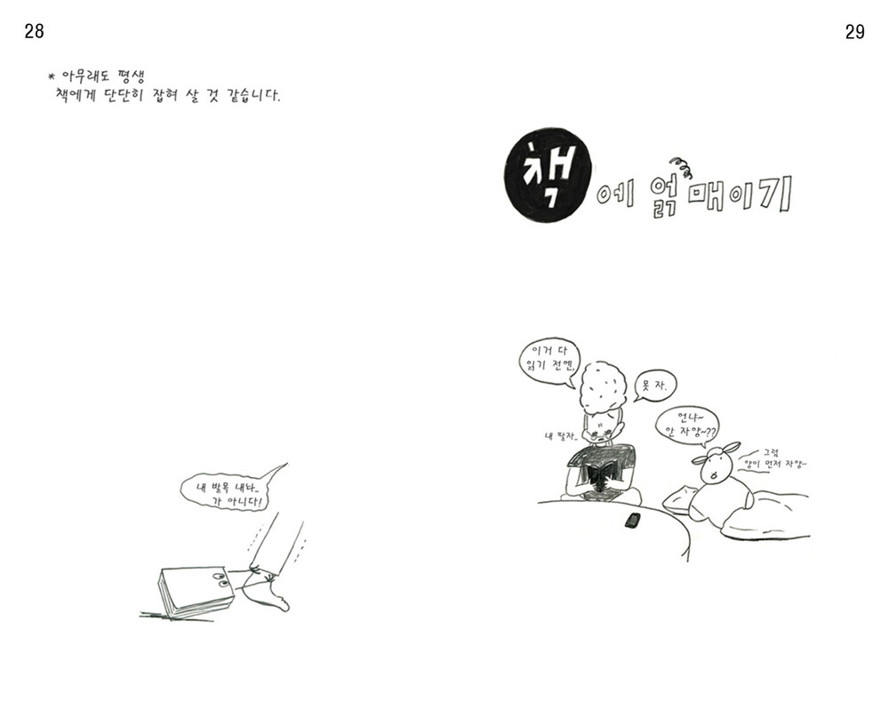 책으로 하는 움직임들을 모은 한 컷 만화 모음집.