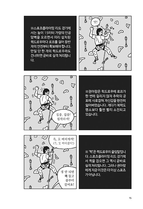 9곳의 지역 도시를 9명의 만화가가 9권의 만화책으로 만드는 만화출판 프로젝트 지역 탐방기 <지역의 사생활 99>. 글로도, 만화로도 어정쩡하다는 열패감에 빠진 주인공, 권아람은 취미인 암벽등반에 매달린다.