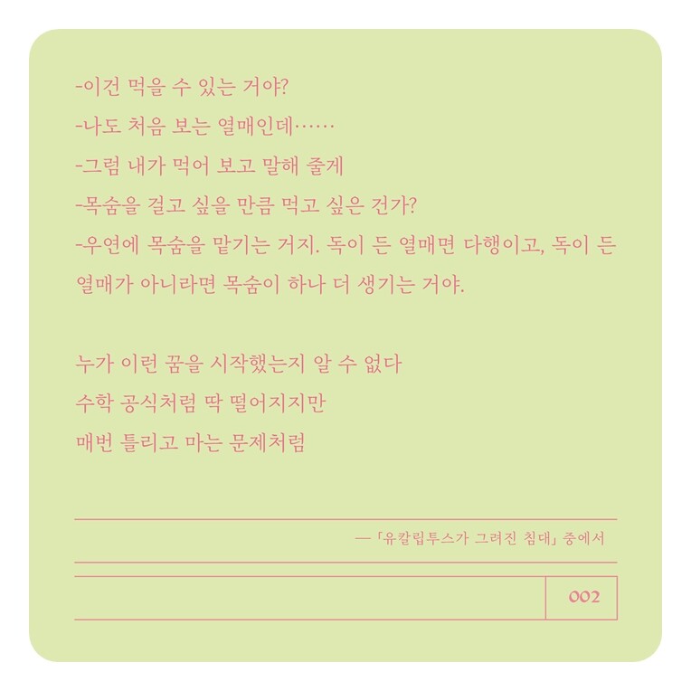 매번 틀리고 마는 문제처럼-「유칼립투스가 그려진 침대」 중에서