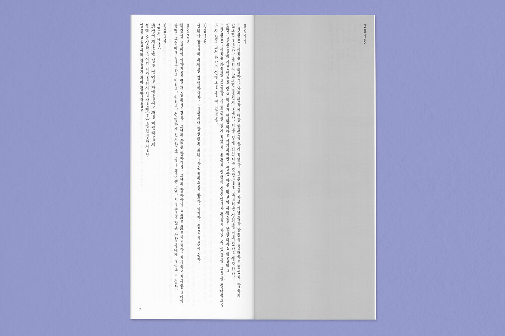 만나고 있는 읽기 경험, 그리고 다양한 길이의 세로 글줄들을 맛볼 수 있을 것이다.