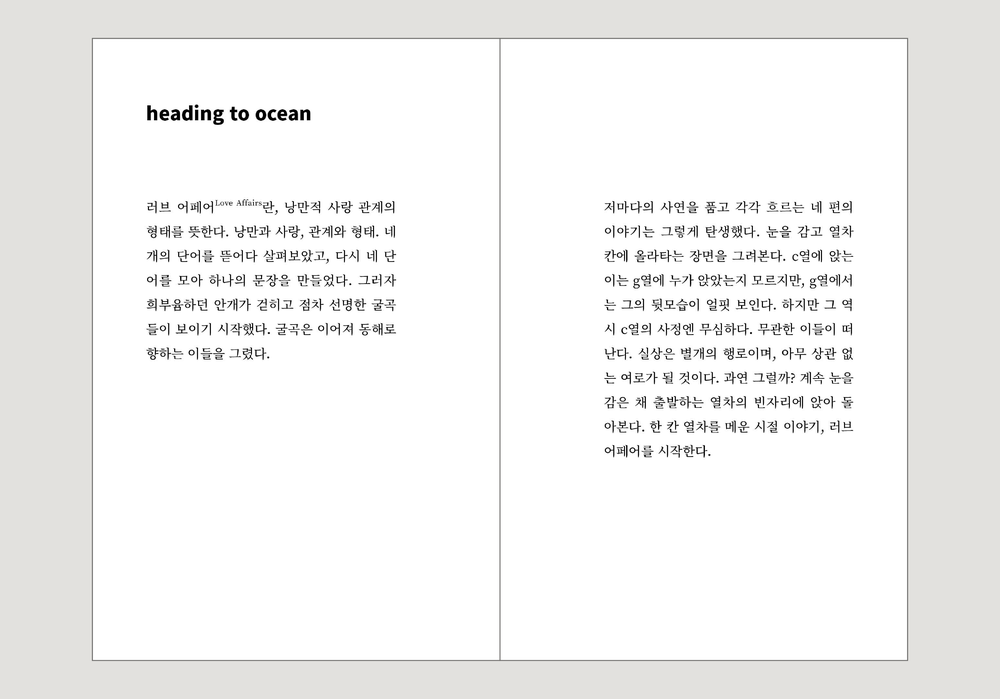 낭만과 사랑, 관계와 형태. 네 개의 단어를 뜯어다 살펴보았고, 다시 네 단어를 모아 하나의 문장을 만들었다.