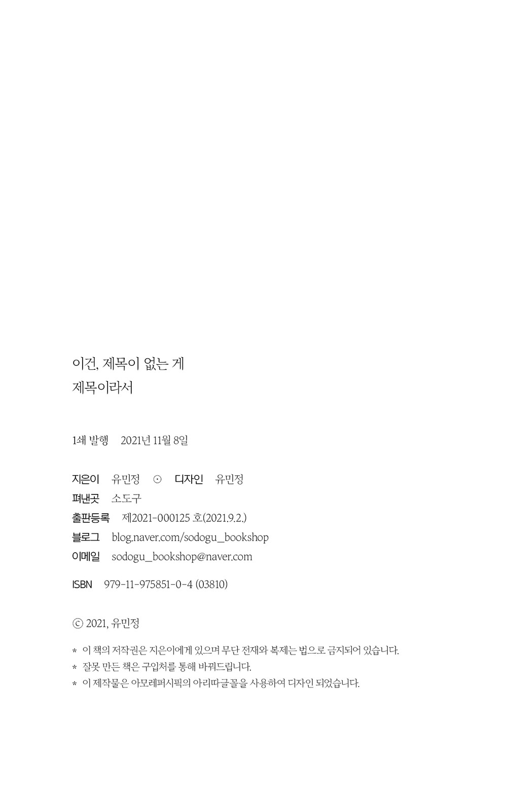 제목 없는 글들에 ‘제목이 없다’라는 이름을 달고, 책의 제목을 한 사람에게 선물하기 위해 만들었습니다.