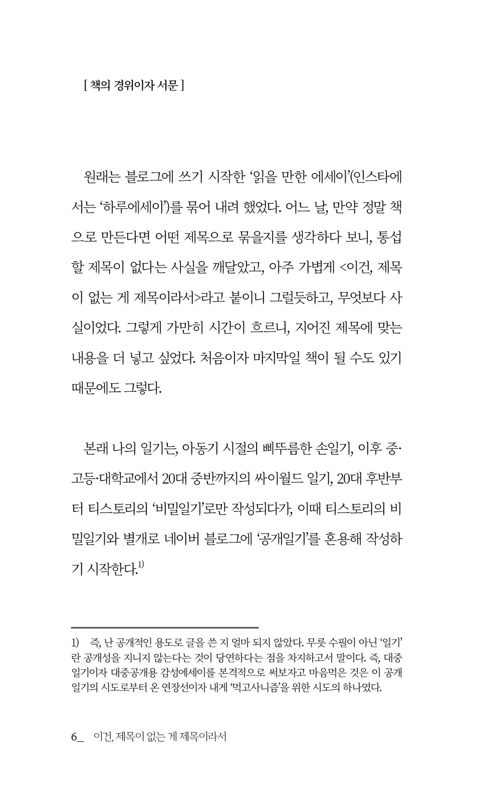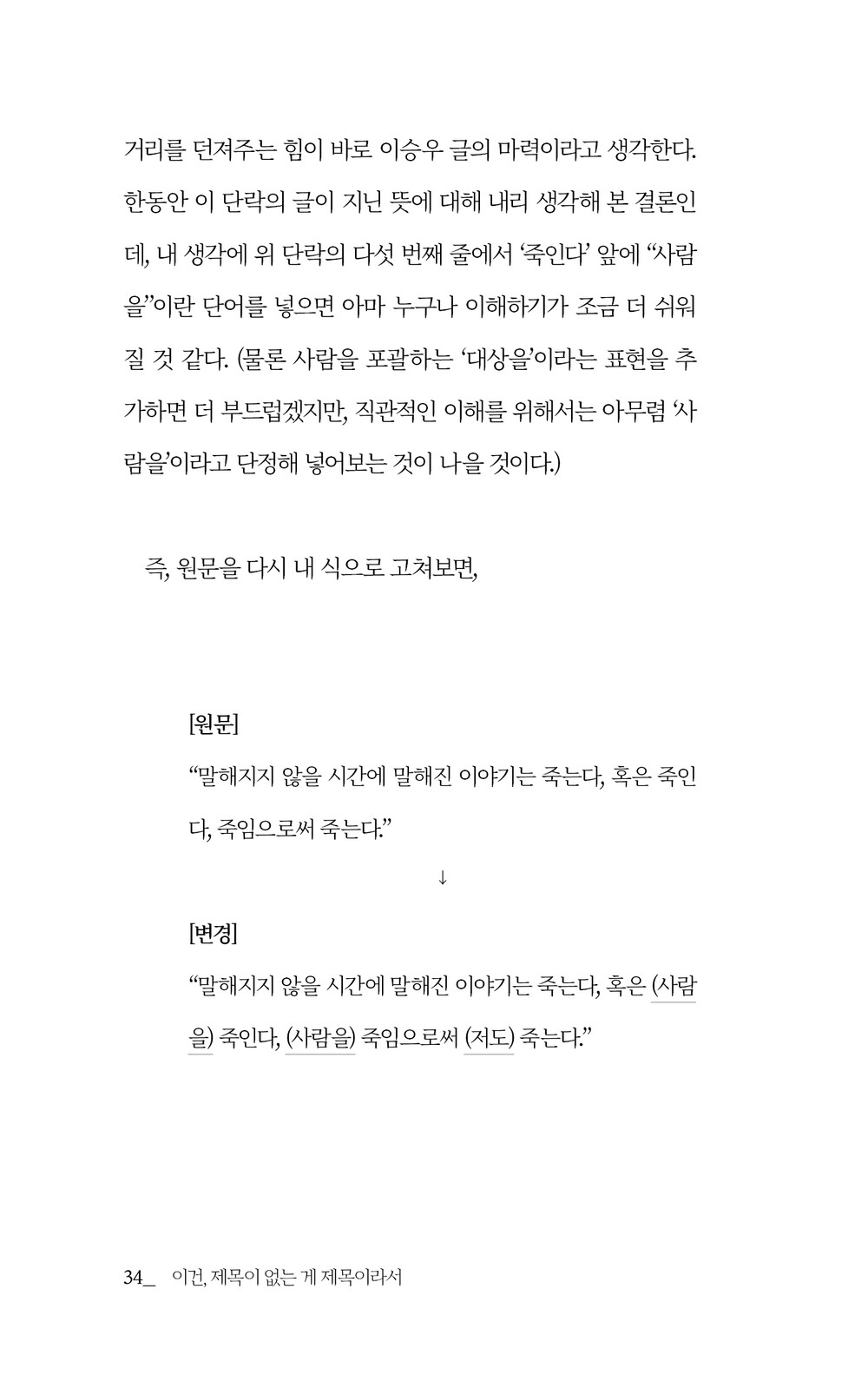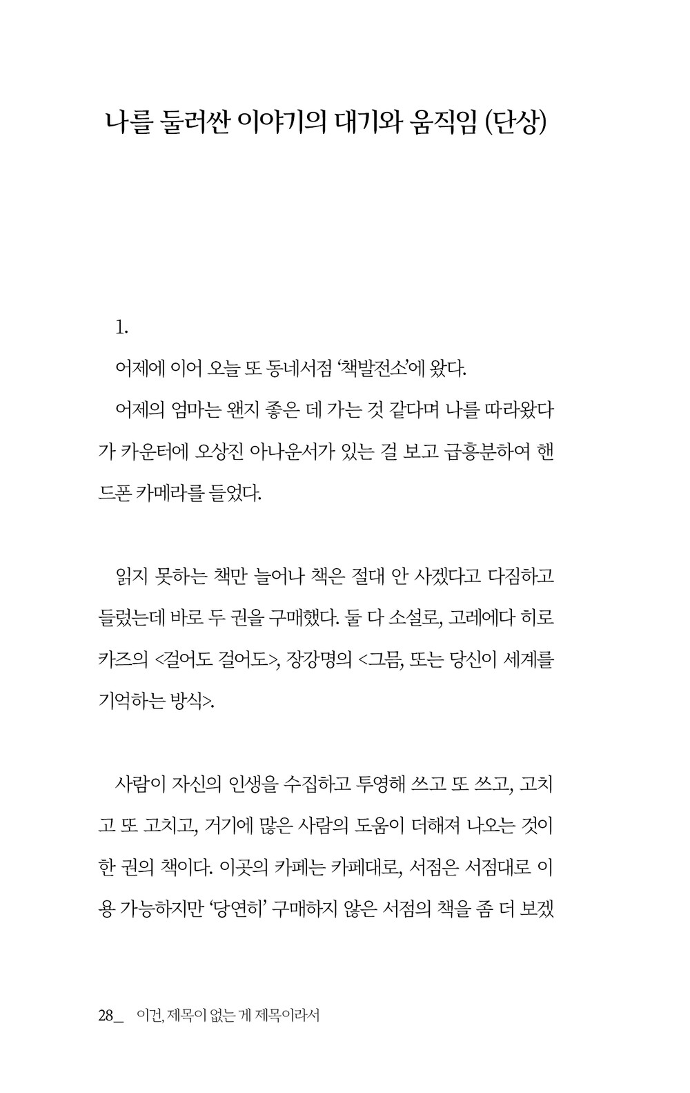 글과 사람, 삶의 등가성을 추구하기 위해 “제목을 지을 수 없는 책”이라는 책의 속성을 떠올렸고,