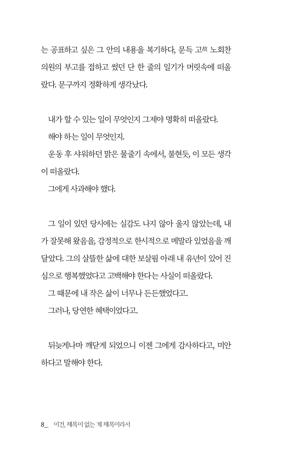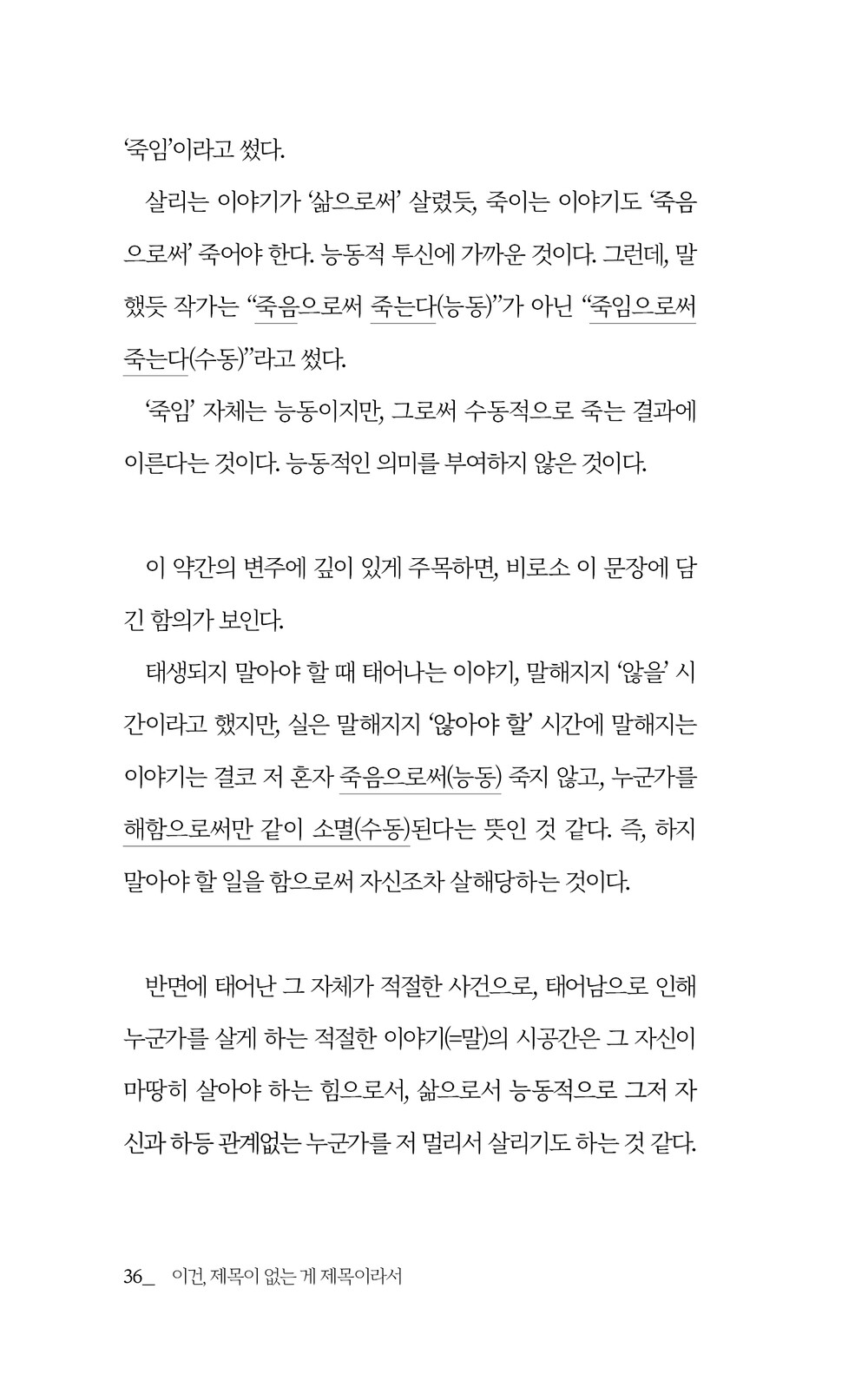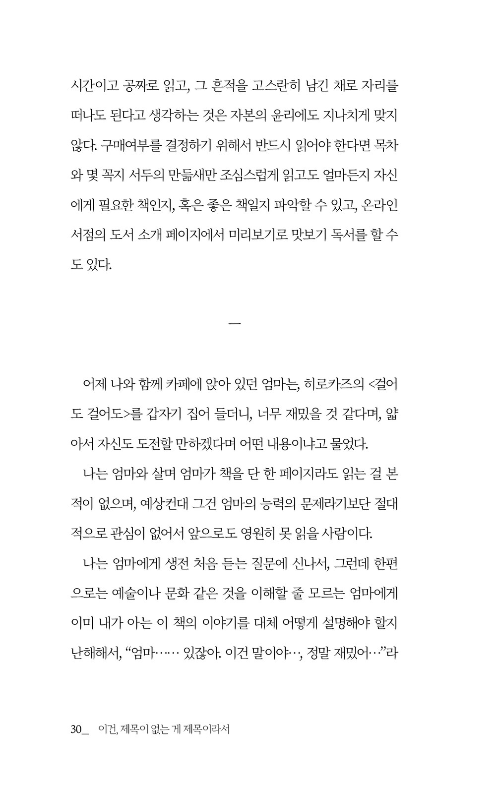 글과 사람, 삶의 등가성을 추구하기 위해 “제목을 지을 수 없는 책”이라는 책의 속성을 떠올렸고,