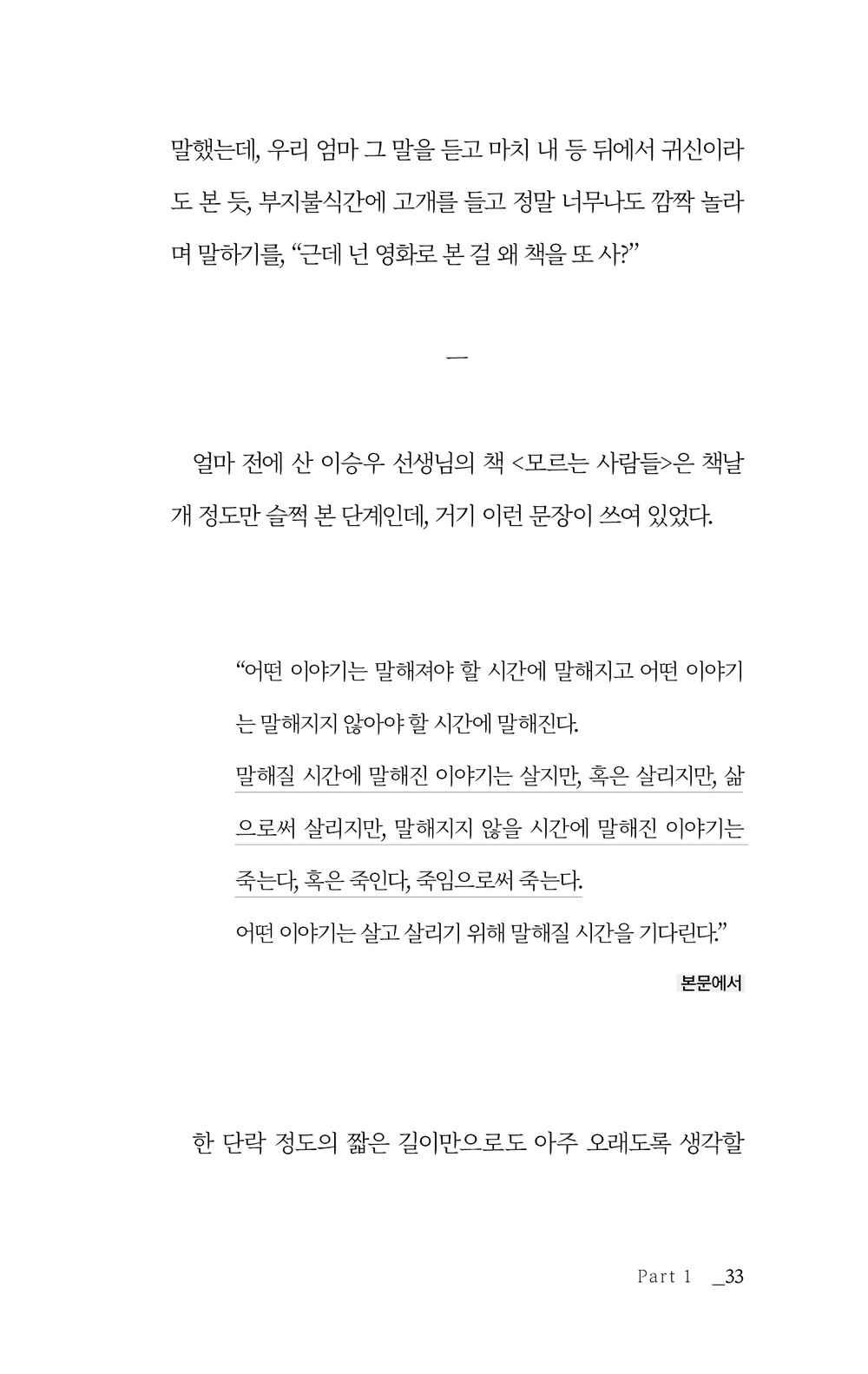 “그런데 난 어쩜 낸시가 죽은 이후로 낸시의 존재를 까맣게 잊고 있었다. 낸시의 삶은 그 선택 하나로 소멸되었고, 다른 이들은 여전히 살아남았는데 말이다.” - 본문 「트위스트와 낸시, Dance with my father」 중