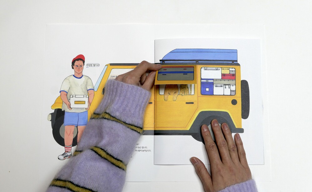 한 장 한 장 넘길 때마다 종이의 사이즈가 변화되며 그에 따라 이미지가 꽉 차기도 하고