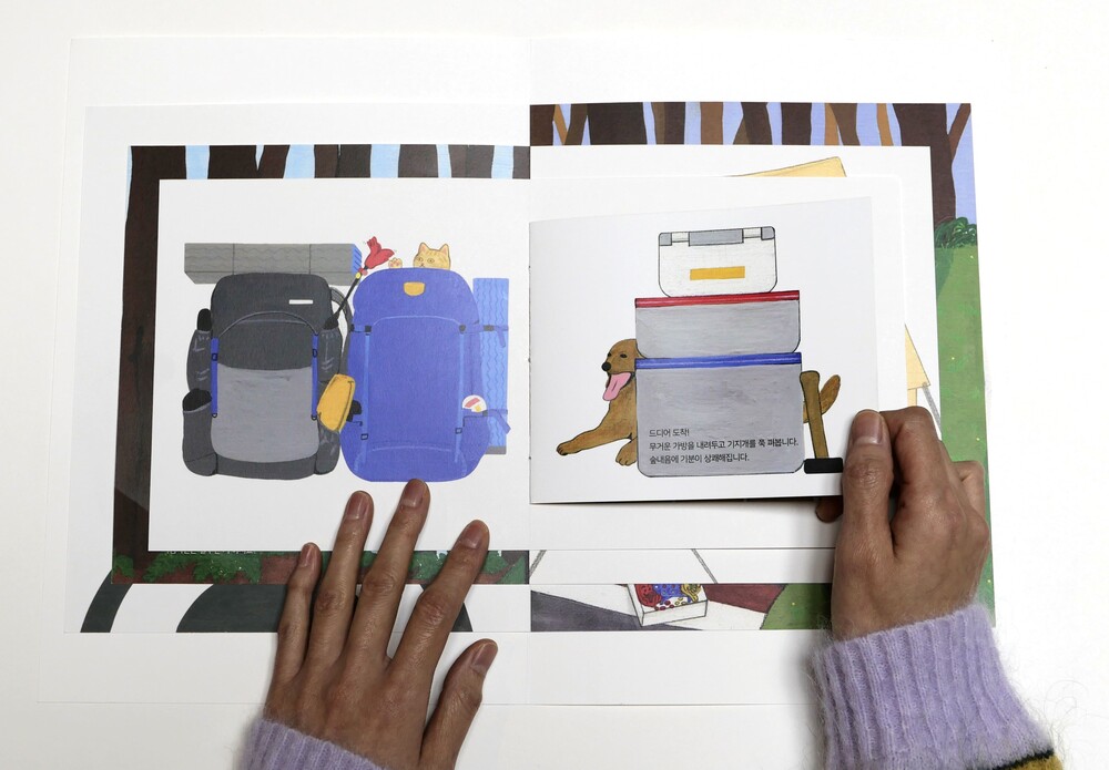 포함된 스티커로 표지를 꾸며 하나뿐인 본인만의 '캠핑' 책을 완성해 보세요.