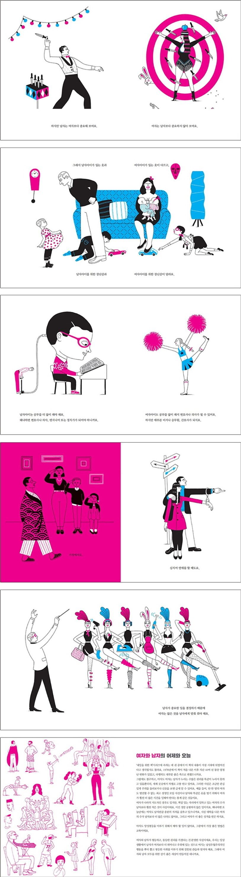 글의 내용뿐만 아니라 그림의 수준에 이르기까지, 세계 최고의 아동 도서에게 주어지는 볼로냐 라가치 상 논픽션 부문 대상 수상 작품다운 면모를 보여주는 것이 바로 ‘내일을 위한 책’ 4권 《여자와 남자는 같아요》라고 하겠습니다.