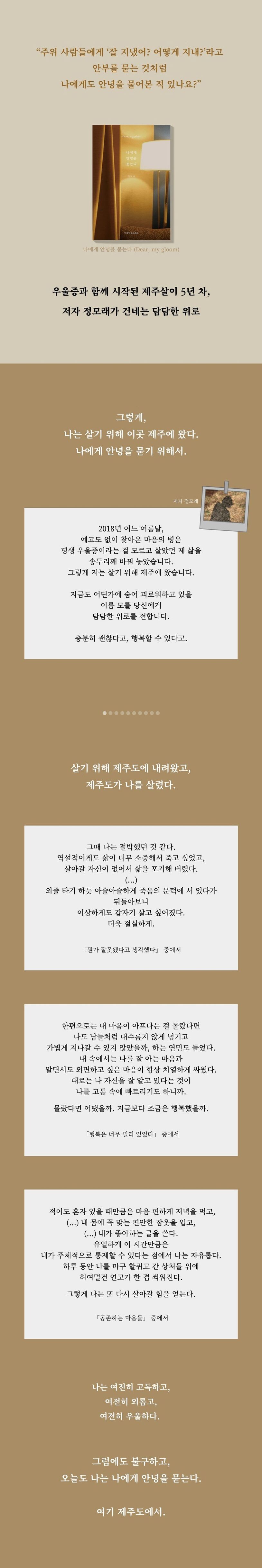 지금도 어딘가에 숨어 괴로워하고 있을 이름 모를 당신에게 담담한 위로를 전합니다.