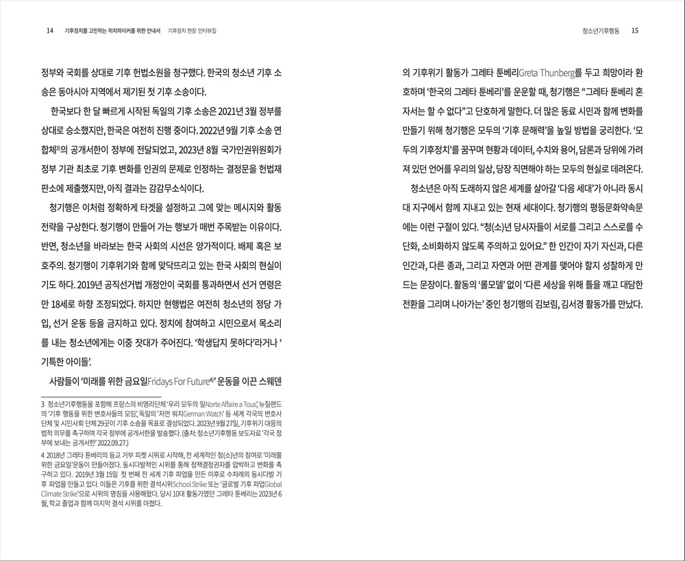 “환경이나 기후 문제는 정치적 중립성을 지켜야 한다는 원칙이 강하게 작동해요. 하지만 사실 기후만큼 이해관계가 얽힌 정치적 문제가 없죠”