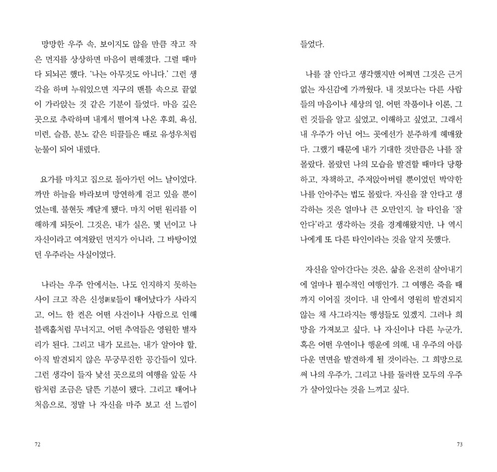 그리고 내가 모르는, 내가 알아야 할, 아직 발견되지 않은 무궁무진한 공간들이 있다.