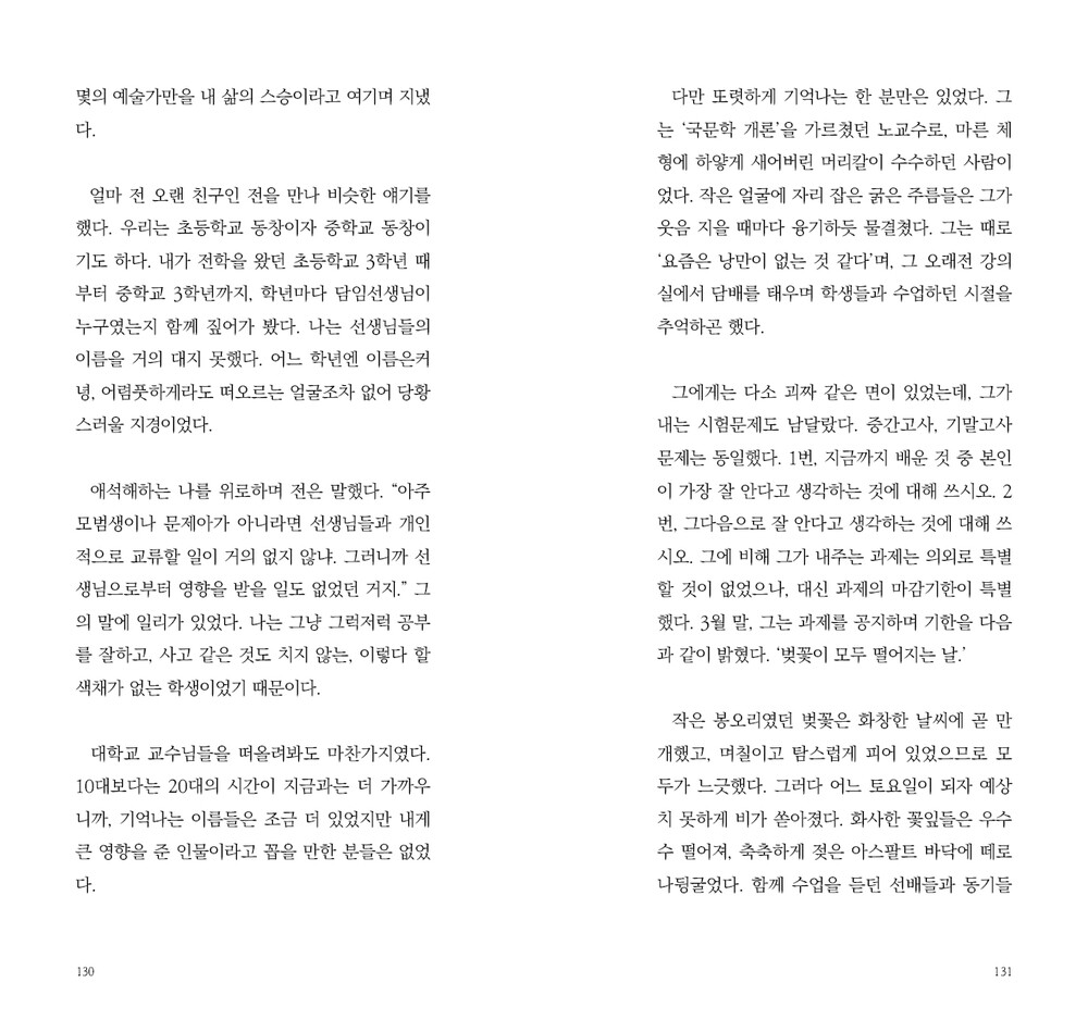 나는 멀쩡히 졸업을 하고, 취업을 하고, 승진을 하고, 그사이 사랑이라 믿었던 것도 하고, 이별도 하고,