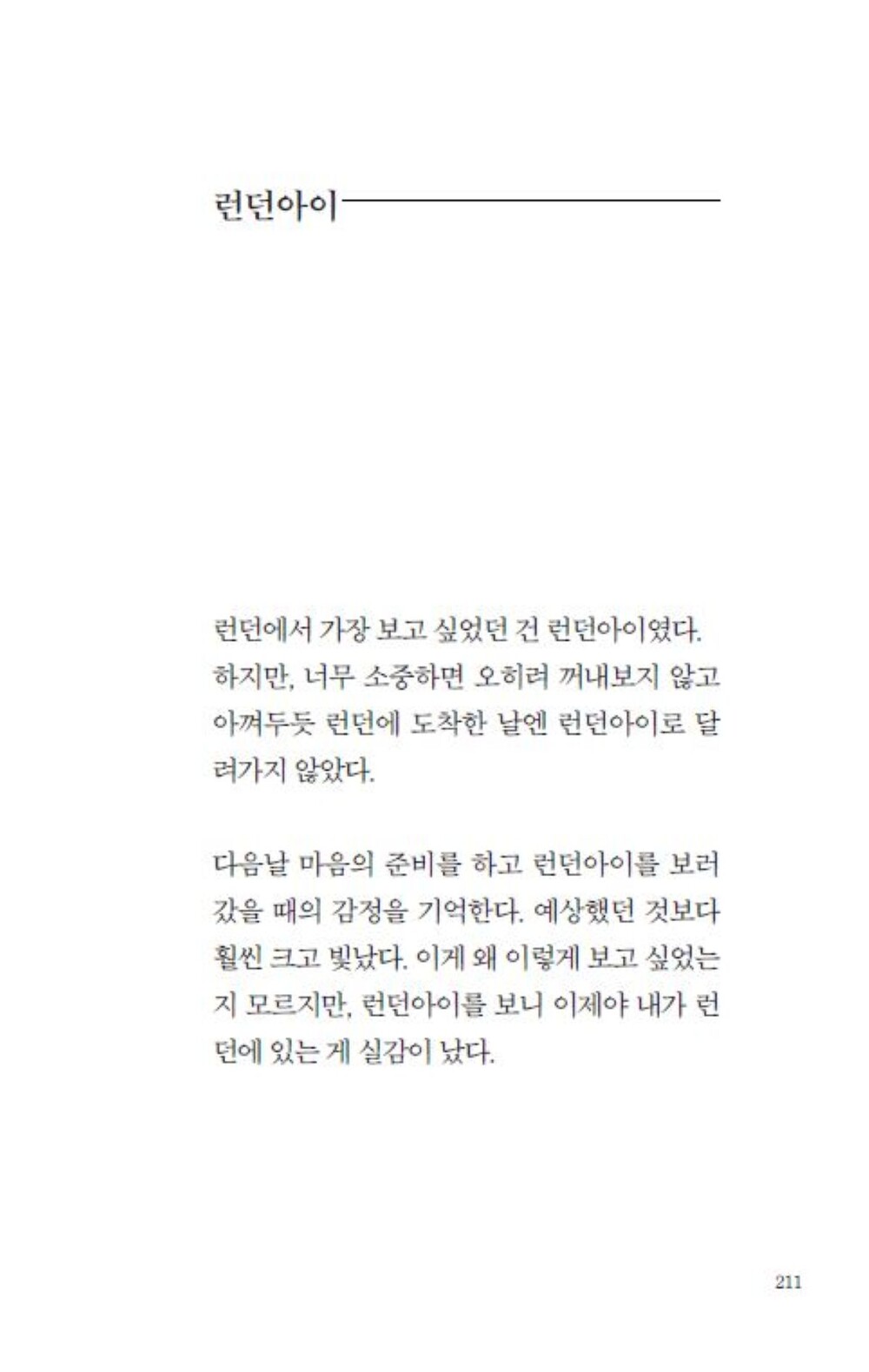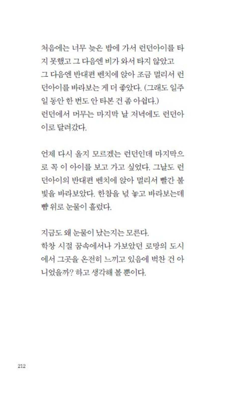어쩔 땐 너무 거대한 것을 보면 내 것이 아닌 것을 한 번에 알아차리기도 한다. 내가 감당할 수 없는 큰 꿈은 그저 꿈으로 남겨두어야지 생각했다.그렇게 소호 거리는 내가 얼마나 광고에 취약하고 지갑이 잘 열리는 소비자인지 확인할 수 있었던 곳이었달까? 지갑이 자주 열리고 주머니는 가벼워졌어도 양손 가득 무겁게 숙소로 돌아오는 길이 얼마나 행복했었는지의 느낌은 여전히 기억난다.그래, 그거면 된 것이다. <소호거리_p.229>
