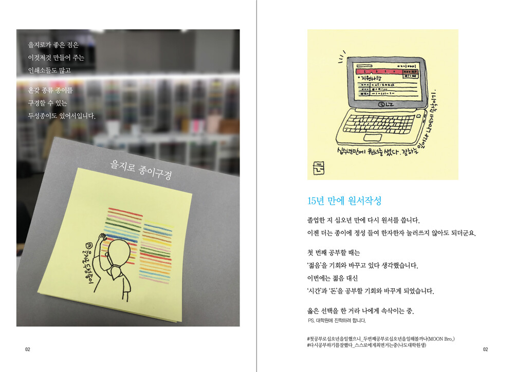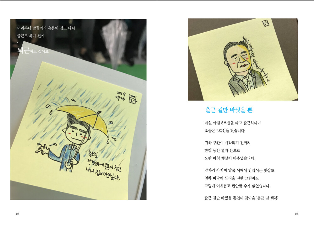 을지로 직장인 Moon Bro.의 Post-it Diary에는 회사와 집 또는 여행길에서 보낸 일상 속 에피소드가 가득하다.