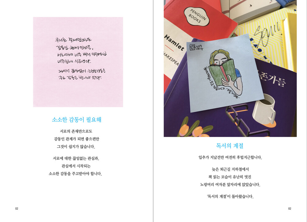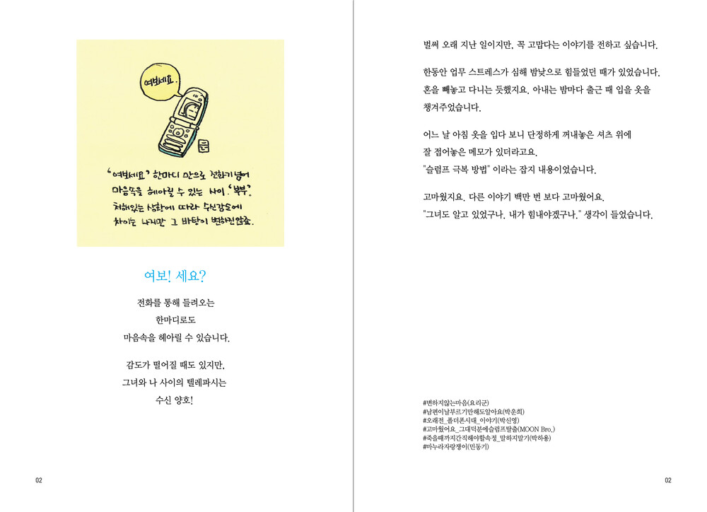 가족들이 잠들고 나면 혼자만의 시간이 옵니다. 혼자 보내는 밤은 보너스 같다는 생각이 듭니다. 밤이슬처럼 똑똑 떨어지는 영감의 물방울들을 모습니다. 모으다 보면 무엇이 되어 있겠지 하면서요. (P158)