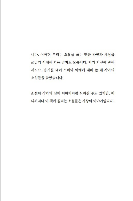 소설이 작가의 실제 이야기처럼 느껴질 수도 있지만, 어디까지나 이 책에 실리는 소설들은 가상의 이야기입니다.