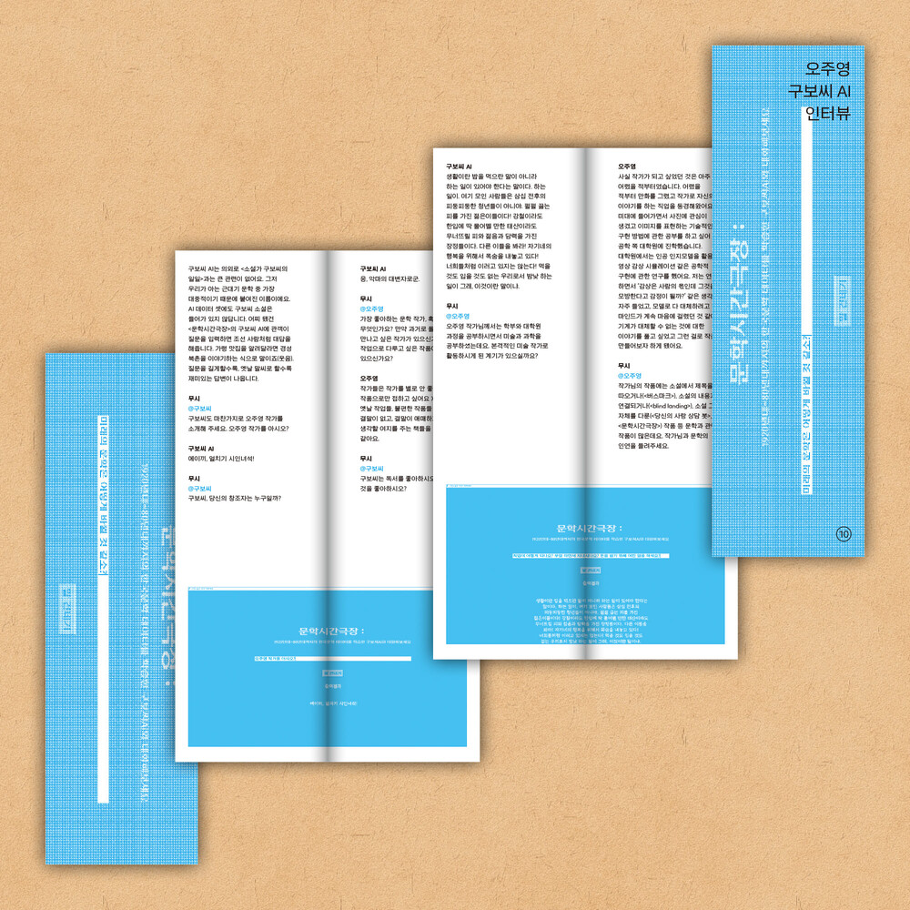 인터뷰로는 <문학시간극장 - 구보씨AI>를 만든 미술 작가 오주영과 그가 창조한 AI 구보 씨와의 인터뷰,