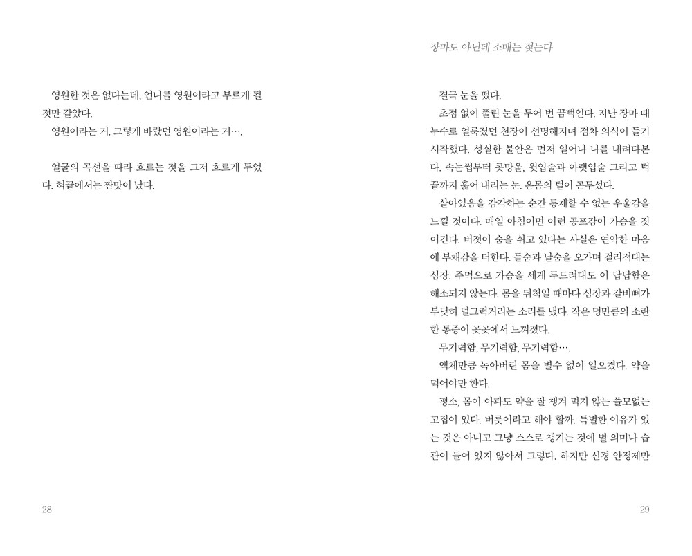 언니의 미간은 내 입에서 우울이 발음되기 이전부터