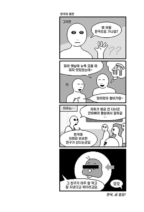 도우너의 고향(?) 깐따삐야 행성 관광을 마친 외계인들. 관광쿼터제 때문에 파파라치가 많은 지구,