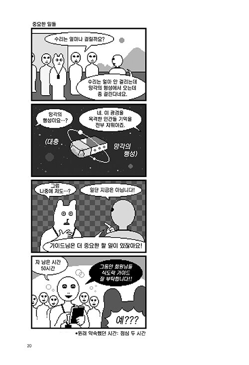 그런데, 이 외계인들의 가이드를 꼬박 50시간동안 맡아야 하게 생겼습니다.