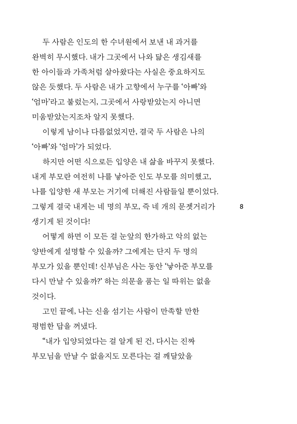 그보다 참 이상한 질문이었다. 내가 입양아라는 걸 언제 처음 알았냐고? 그걸 모를 수가 있나?