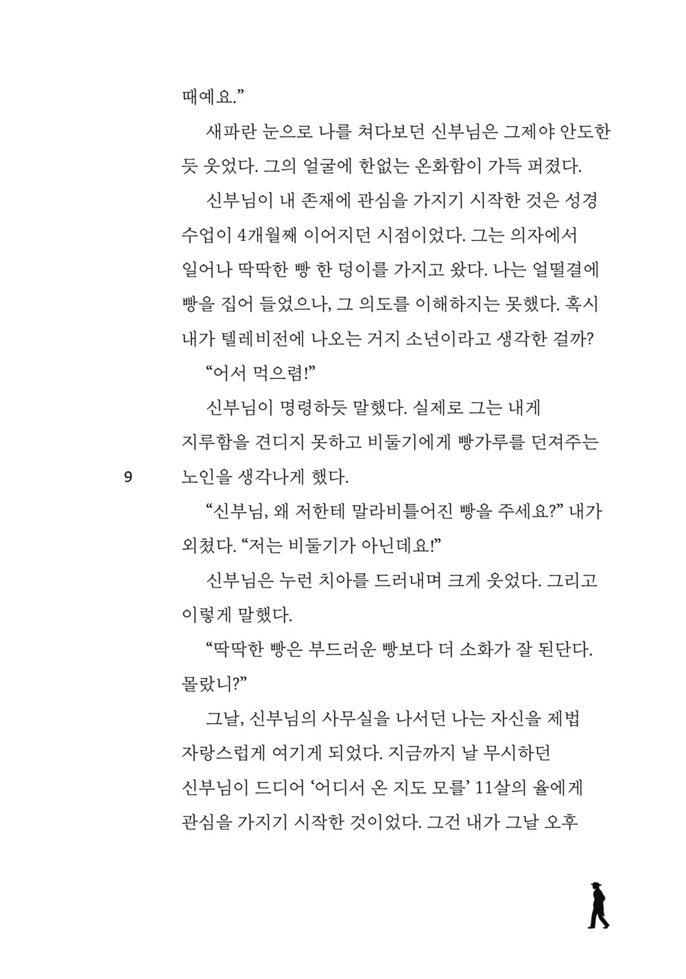 나는 신부님을 쳐다보고, 그의 하얗고 아름다운 두 손을 쳐다보고, 거의 검은색에 가까운 내 두 손을 쳐다보았다. 이렇게나 손 색깔이 다를 수 있다니.