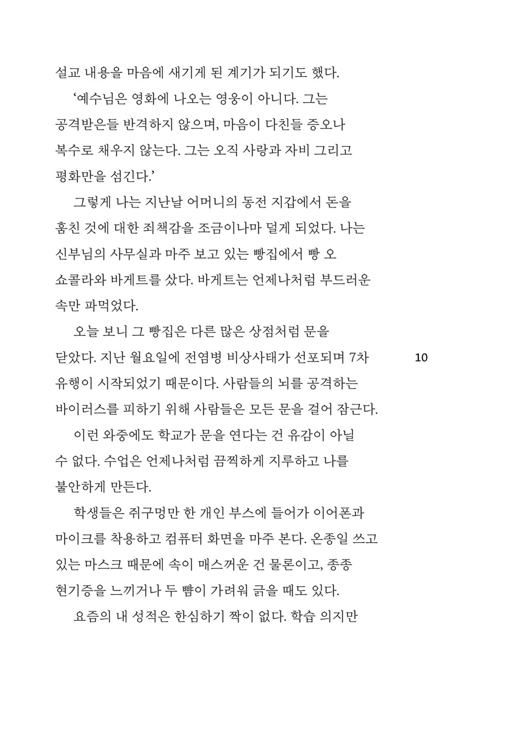 그중에서 내가 맡은 일은 그리움의 영혼을 수거하는 것이었다. 온종일 분홍색 슬라임 같은 영혼을 수거하고 나면 손에서는 달큰하고 씁쓸한 냄새가 났다.