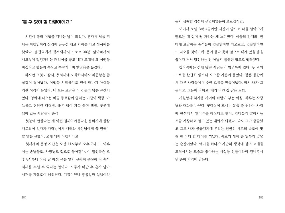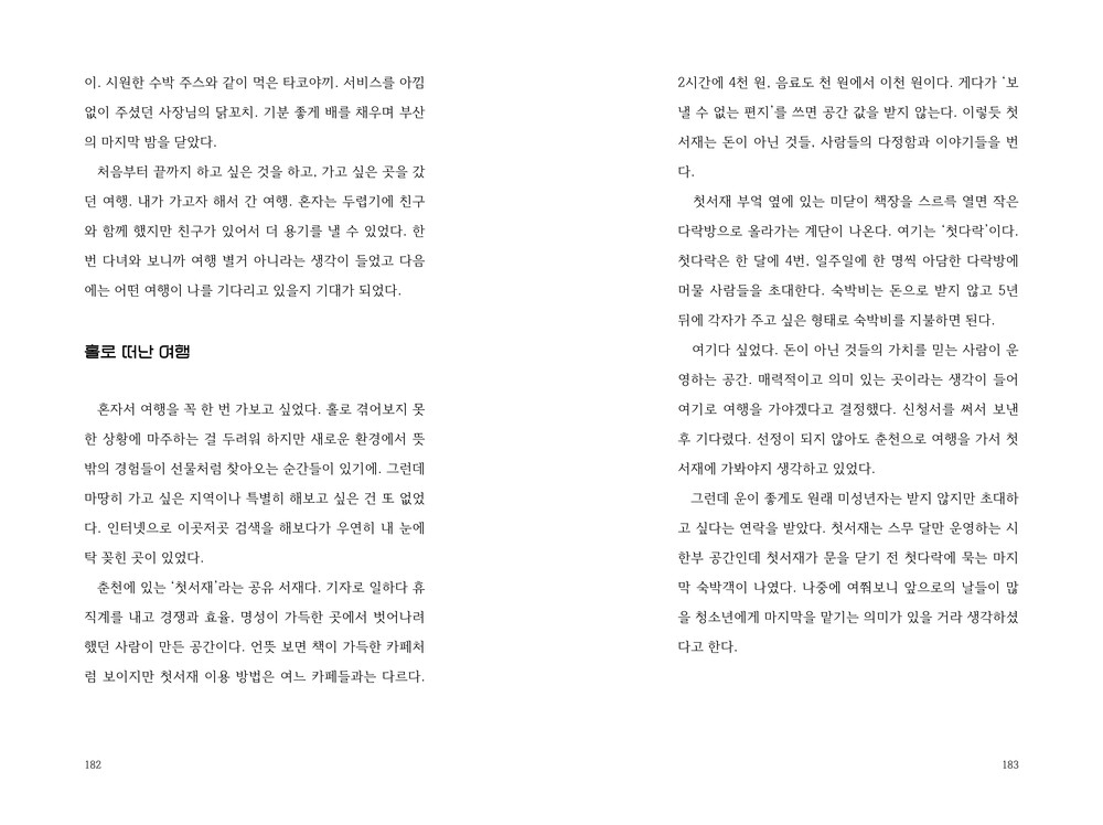 책의 마지막 장을 덮고 나면 길은 하나가 아니라는 말, 정해진 정답은 없다는 말이 피부로 와닿기를 바란다.