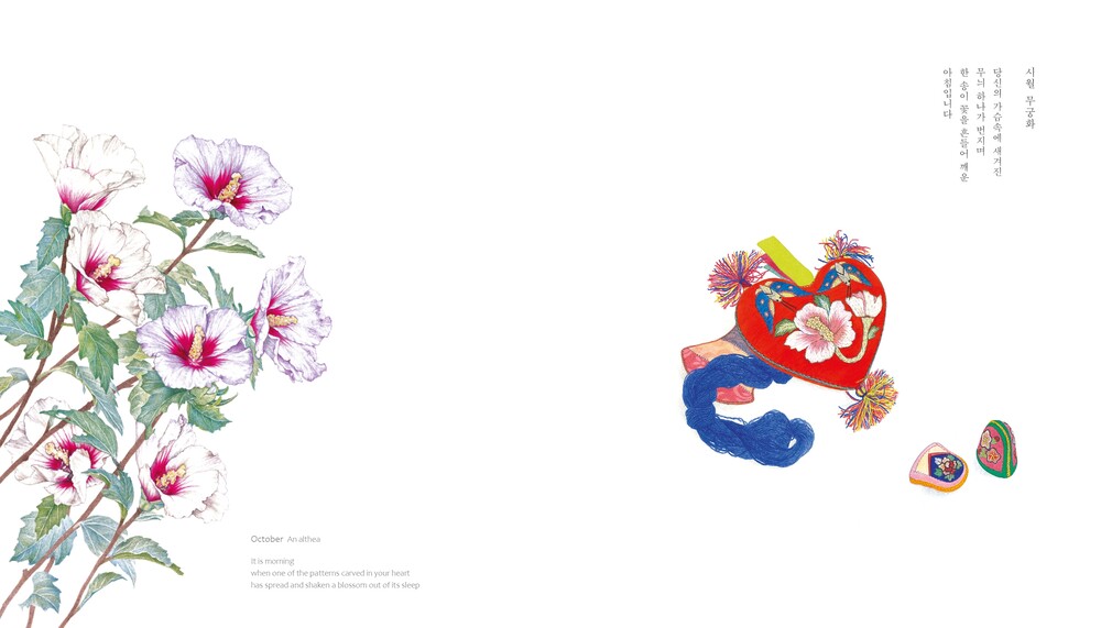 전통규방공예의 무늬들과 한국의 꽃을 세밀화로 그린 그림책입니다.