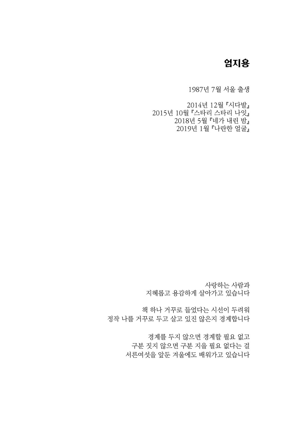 2014년 『시다발』로 첫 독립출판 시집을 만들었던 엄지용의 다섯 번째 시집이자 세 번째 독립출판물입니다.