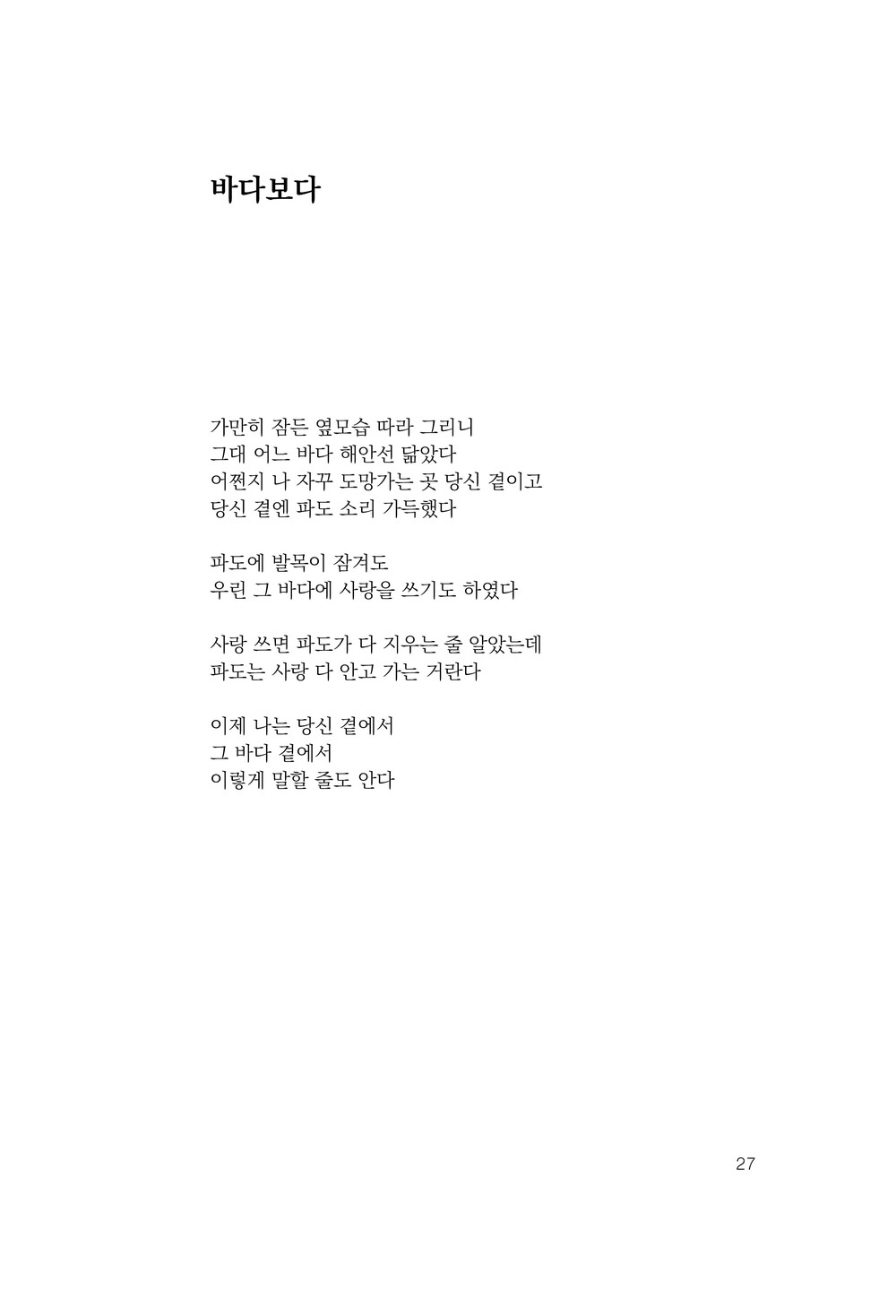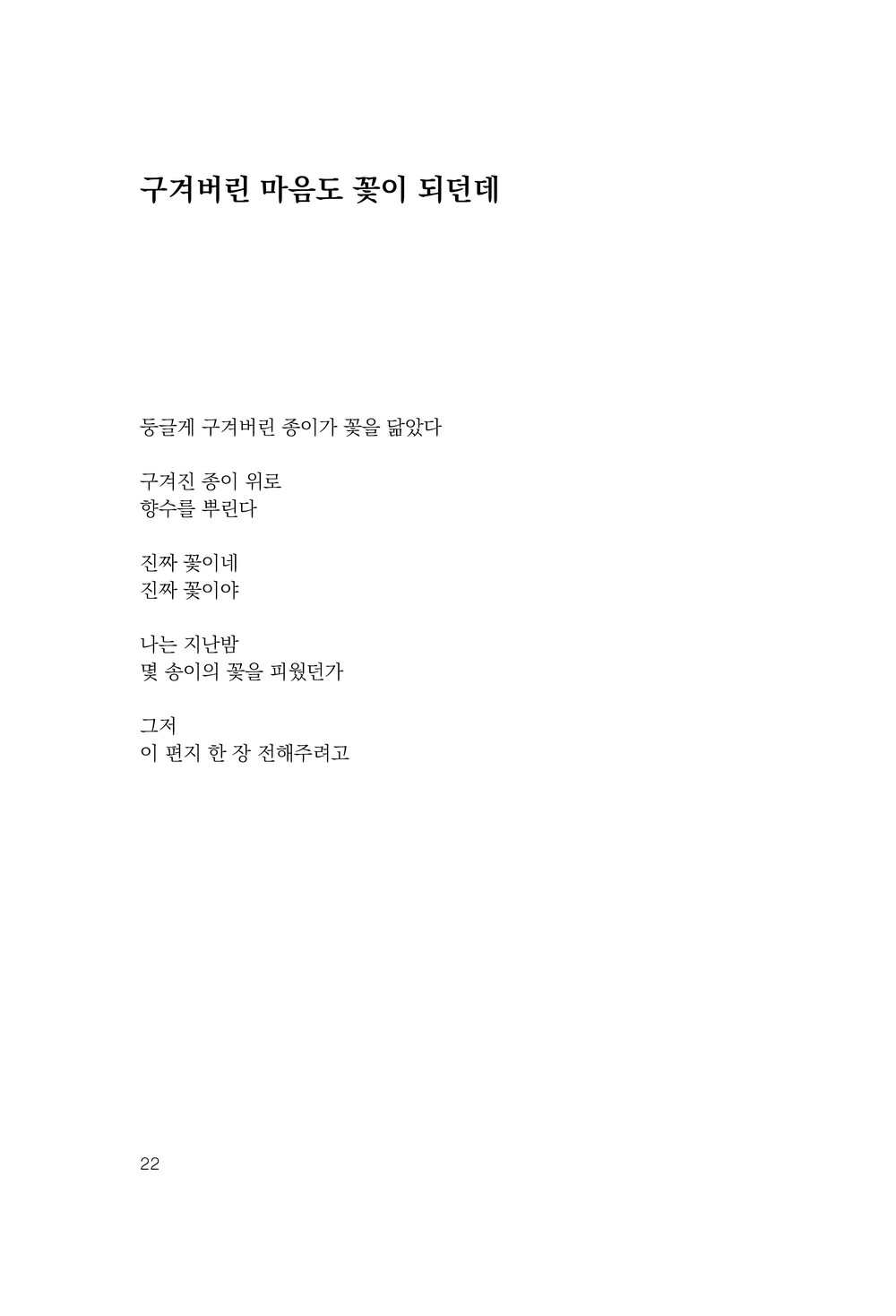 읽으면 무슨 말인지 바로 알 수 있는 어렵지 않은 담백한 시를 쓰고 싶었습니다.