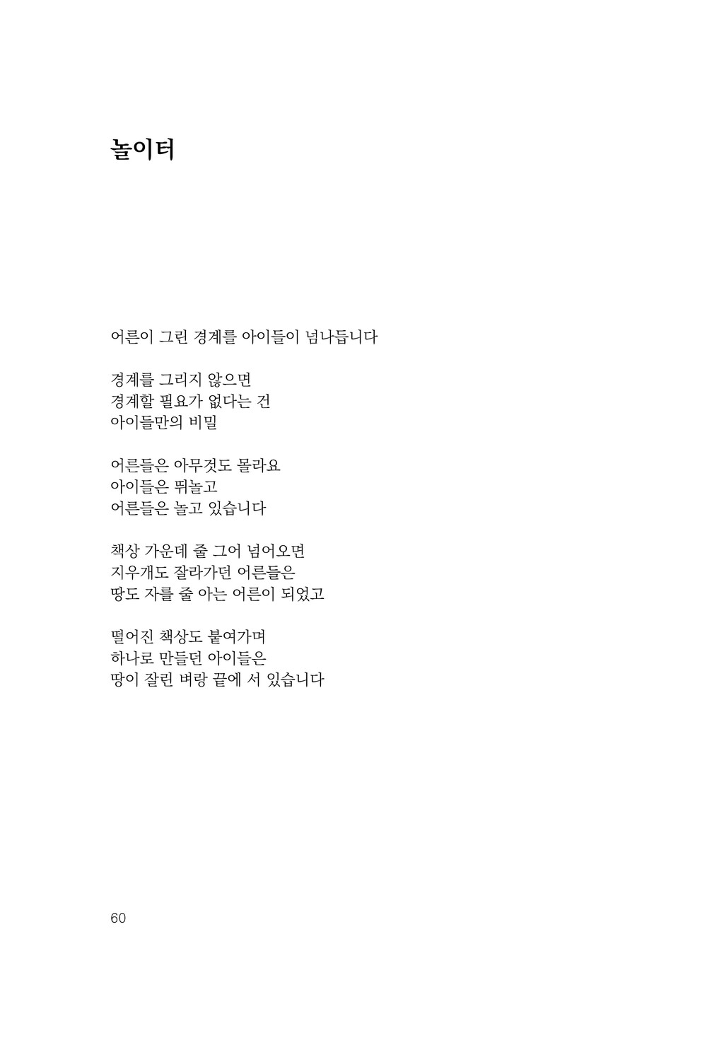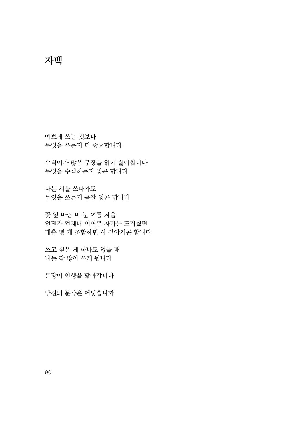 예전에도 그랬듯 여전히 시와 시인을 구분하는 것은 무의미하다고 생각합니다.