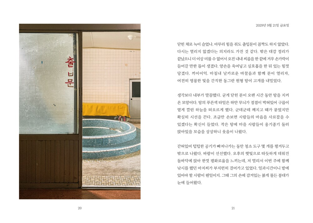 최후의 목욕탕은 어떤 모습일까 상상하며 글을 써 내려갔습니다.