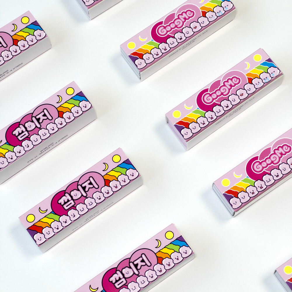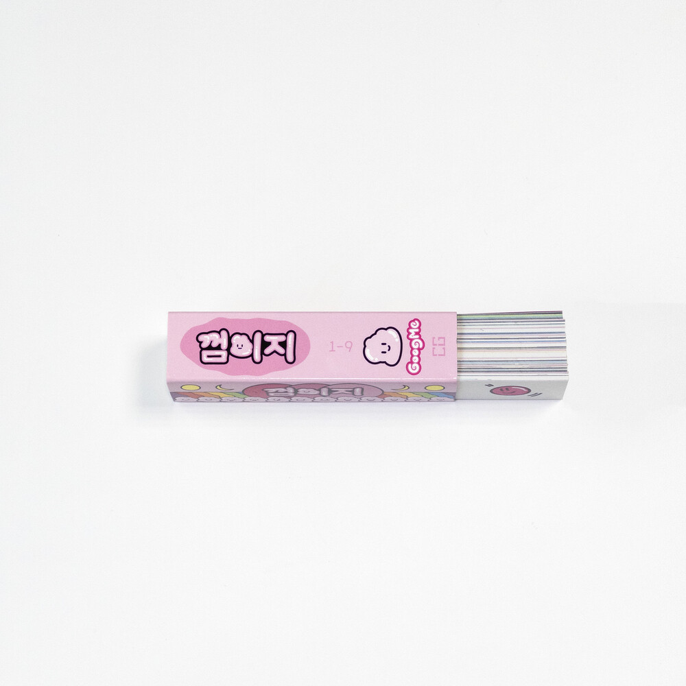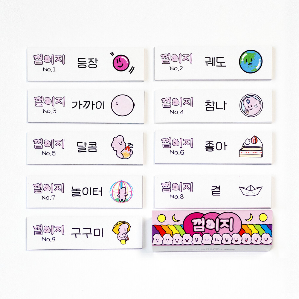 <껌이지>는 9권의 세트 도서이며 실제 껌의 형태와 크기에 맞춰 제작되었습니다.