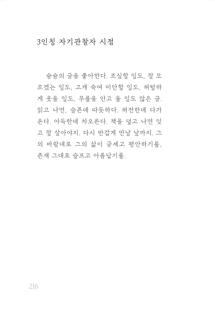 '나를 껴안는 글쓰기'의 스무 가지 질문에 각자의 방식으로 답하는 세 작가의 글을 읽으며,