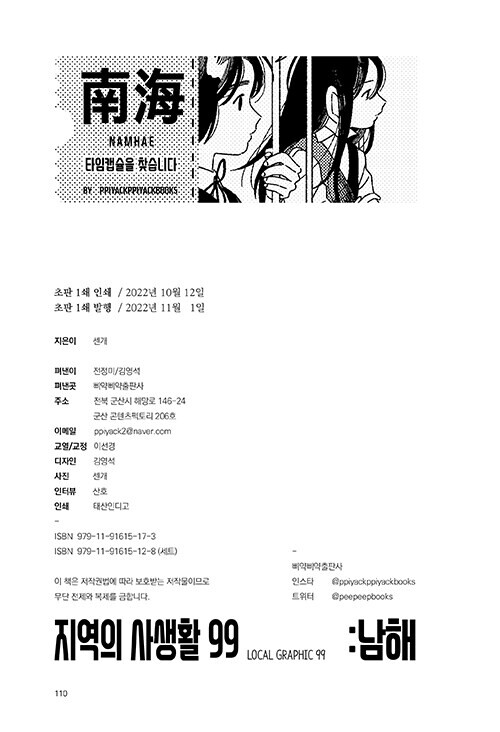 9곳의 지역 도시를 9명의 만화가가 9권의 만화책으로 만드는 만화출판 프로젝트 지역 탐방기 <지역의 사생활 99>. 우리가 ‘남해’하면 떠오르는 이미지는 관광지로서의 남해일 것이다.