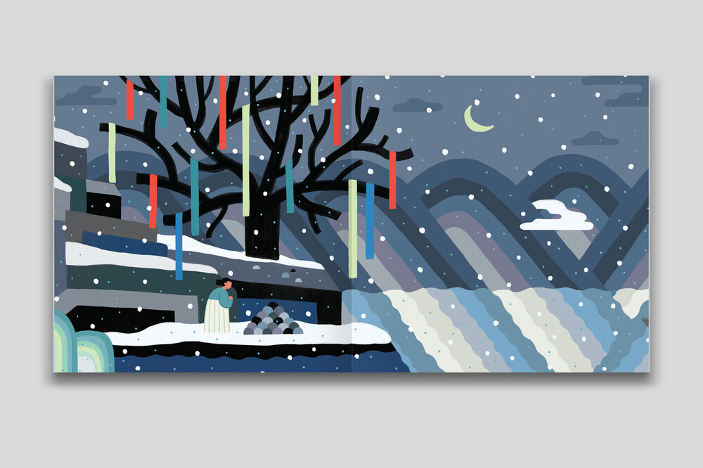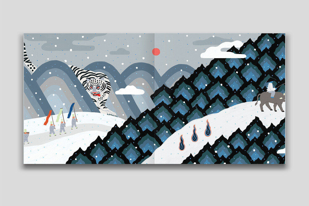 눈발에 가려 모든 것이 희미한 세계, 그곳을 지나는 인간과 영혼들, 그들을 둘러싼 신과 사자들을 그렸습니다.
