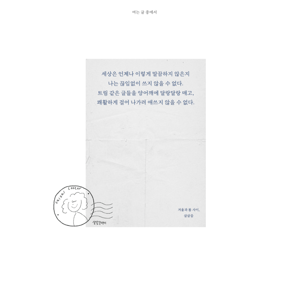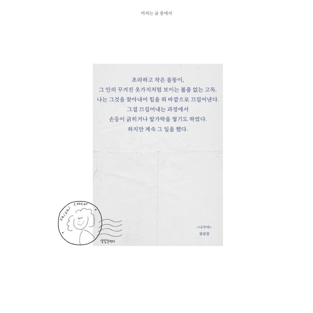 "내가 부칠 건 살살 쓴 편지 한 통 뿐이에요"