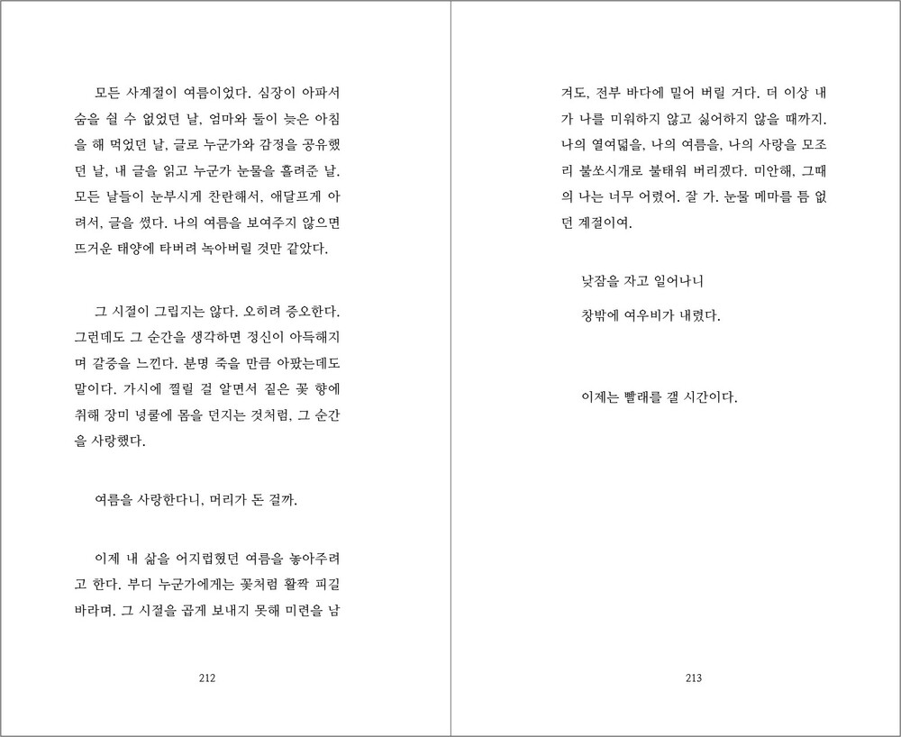 이제는 그 시간들을 곱게 포장해서 깊은 바다 속으로 떠나보내려 합니다. 오뉴월의 후회와 슬픔과 환희가 당신에게도 닿기를 바라며.