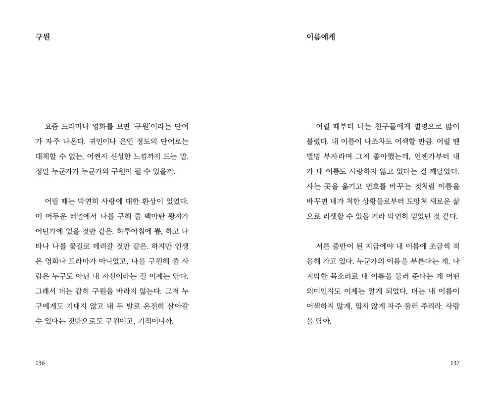 이제 와 나는 그게 너무 고맙다. 그간 나의 선택들에, 그리고 내가 택했던 그 사람들에게. 철없던 시절일지라도 흉흉한 세상에 이 정도면 제법 뽑기 운이 나쁘지 않았던 것 같다고. 자다가 갑자기 이불을 걷어찰 만큼 부끄럽고 수치스러울 때도 있지만 그것마저 귀여운 추억으로 남을 수 있어, 피식 웃으며 그때를 떠올릴 수 있어 다행이라고. 어느 것 하나 잘못된 사랑은 없었다고. 그 인연을 모두가 참 귀하다고.
