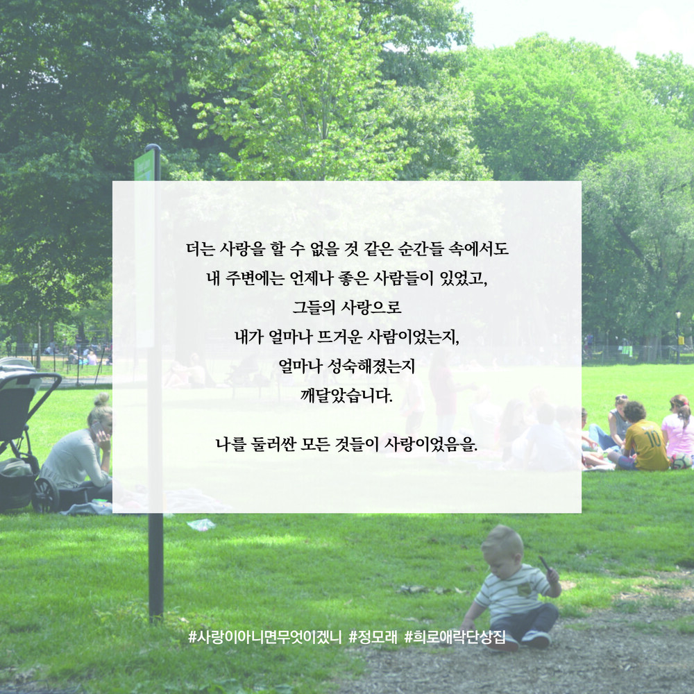 더는 사랑을 할 수 없을 것 같은 순간들 속에서도 내 주변에는 언제나 좋은 사람들이 있었고,