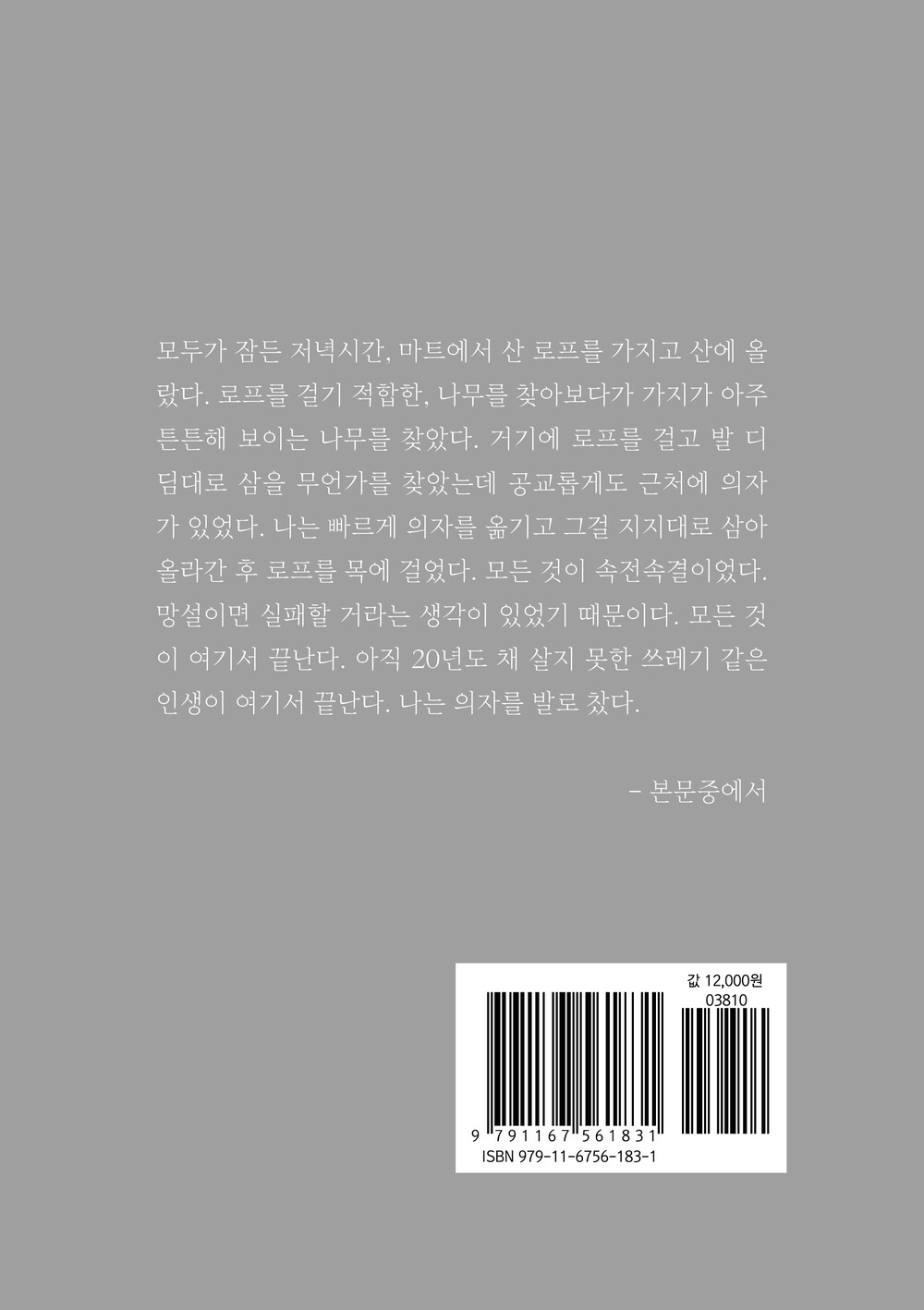 나는 빠르게 의자를 옮기고 그걸 지지대로 삼아 올라간 후 로프를 목에 걸었다.