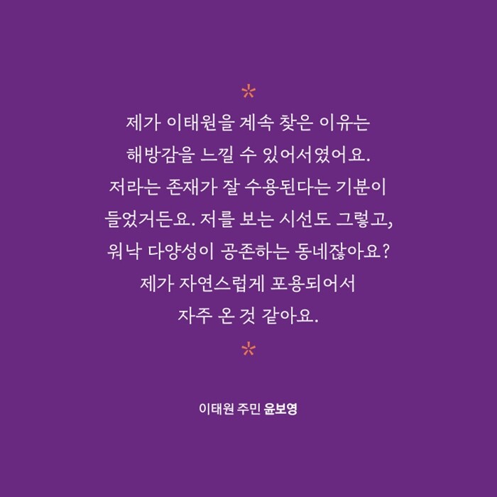 이태원 방문객 정승연 틀에 박히지 않아서 틀을 깰 수 있는 곳