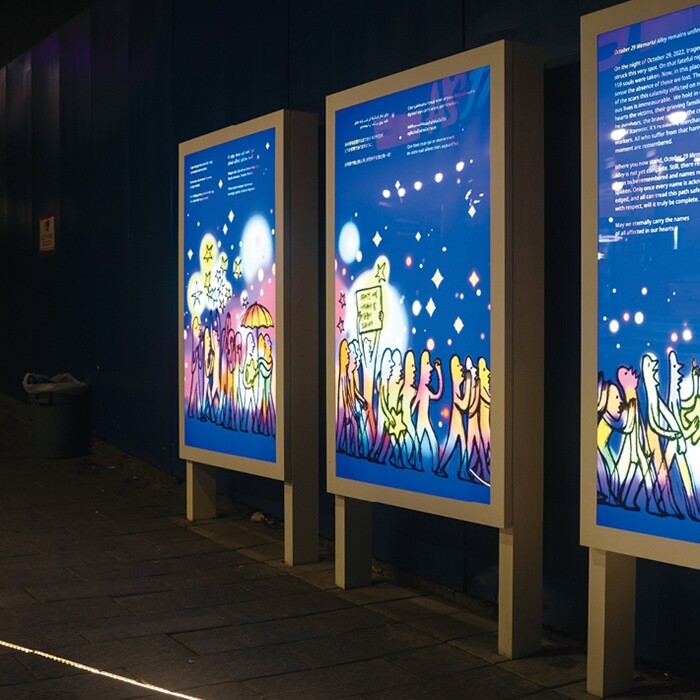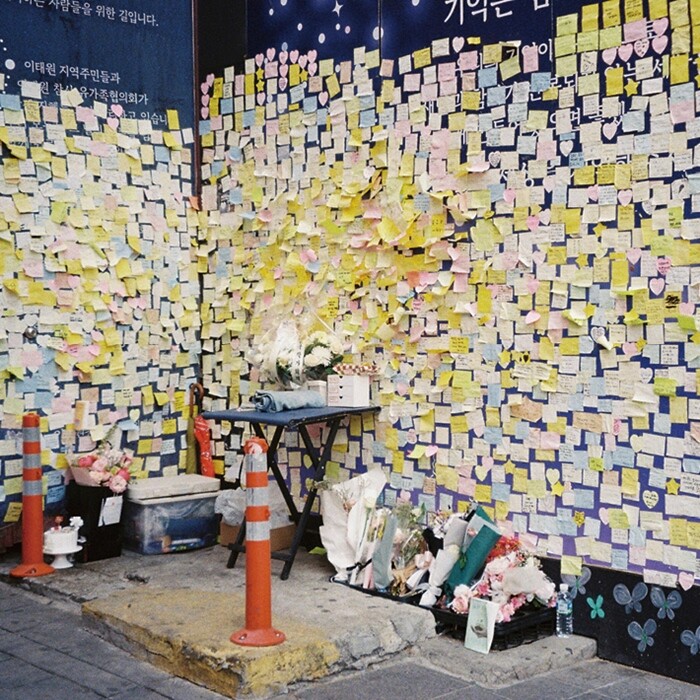 위패도 영정도 없이 치른 관제 추모의 아픈 기억. 추모는 꼭 무겁고 엄숙해야 할까. 한동안 영업을 중단했던 범조씨는 압사가 발생했던 골목 앞을 일부러 지나면서도 국화를 놓거나 포스트잇을 붙이지는 못한다. 일주일에 몇 번씩 이태원에서 약속을 잡던 승연씨는 ‘애도’에 대한 복잡한 심경을 고백한다. 둘 다 안타까움이 없어서가 아니다. 다만, 더는 잃어버리고 싶지 않은 게 있기 때문이다.