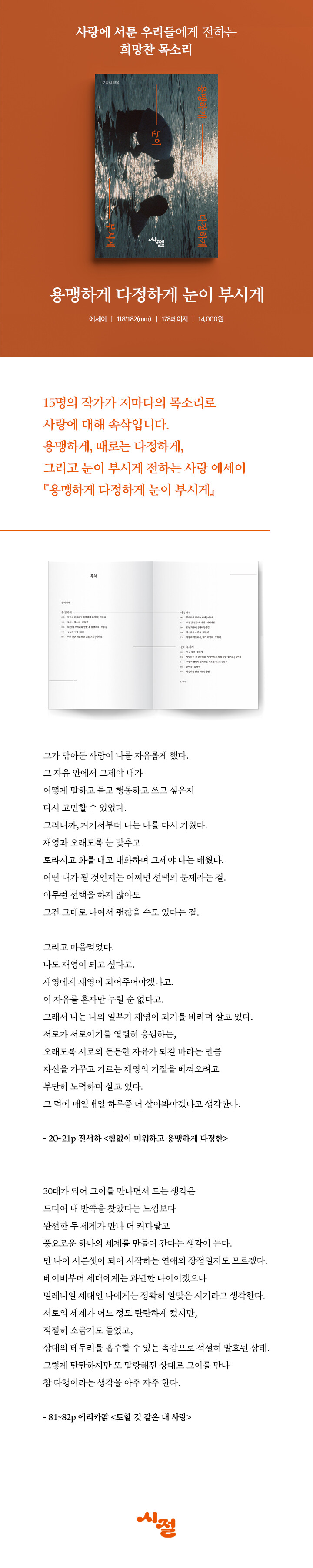 15명의 작가가 용맹하게, 때로는 다정하게, 그리고 눈이 부시게 전하는 사랑 에세이.