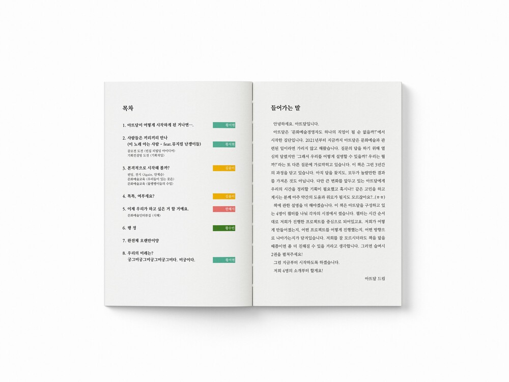 이 질문에서 시작된 아뜨달은 2021년부터 지금까지 문화예술과 관련된 일이라면 뭐든 하면서 열심히 달려왔습니다.